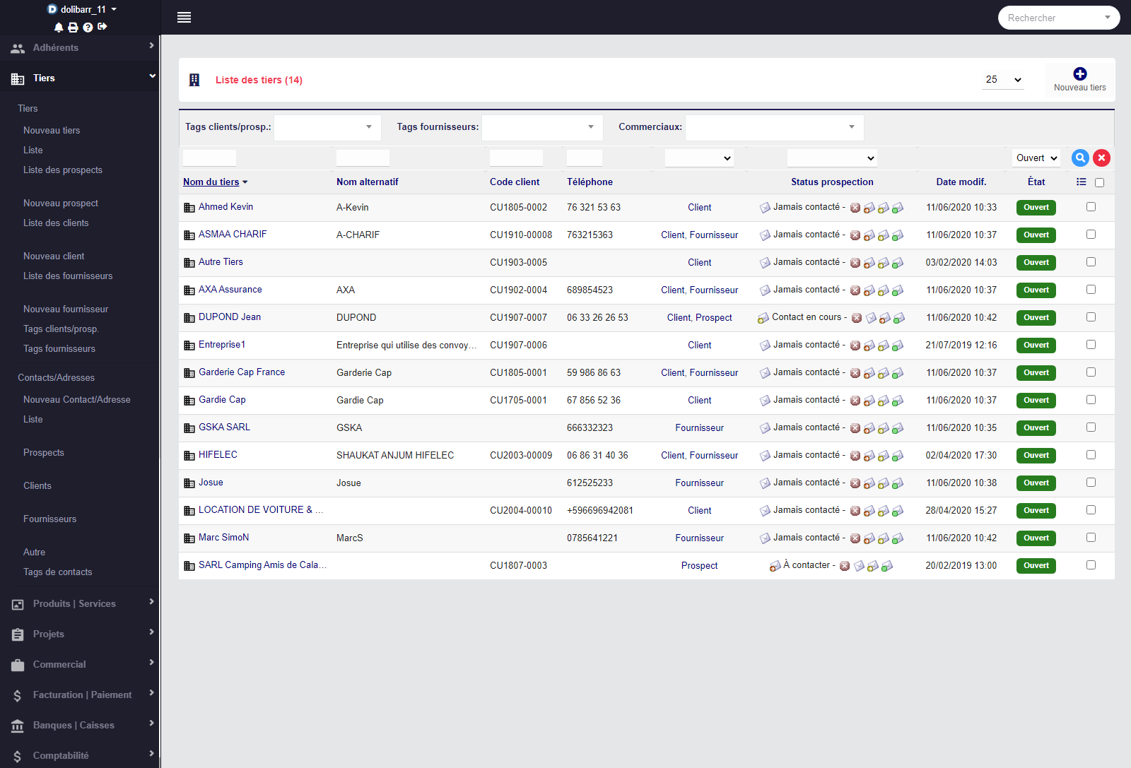 The new Theme "ModernTheme", endowed with Responsive display, allows you to change the style of your Dolibarr completely, it is suitable for all computer devices of different sizes: PC desktop, Laptop, Smartphone, tablet ...