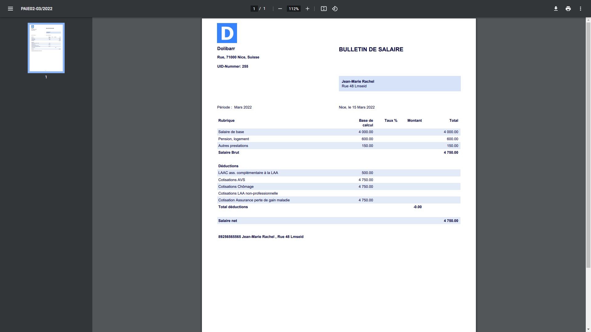 Generieren Sie Ihre Schweizer Lohnabrechnung auf Dolibarr,
