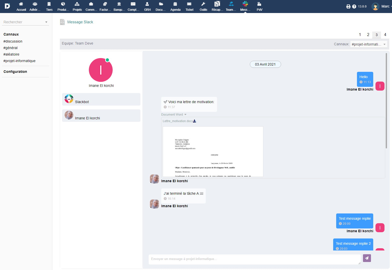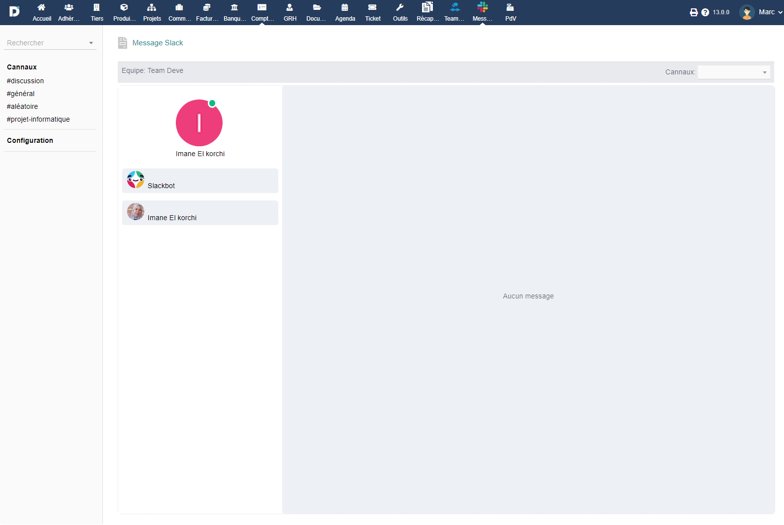 Slack interface embedded in Dolibarr