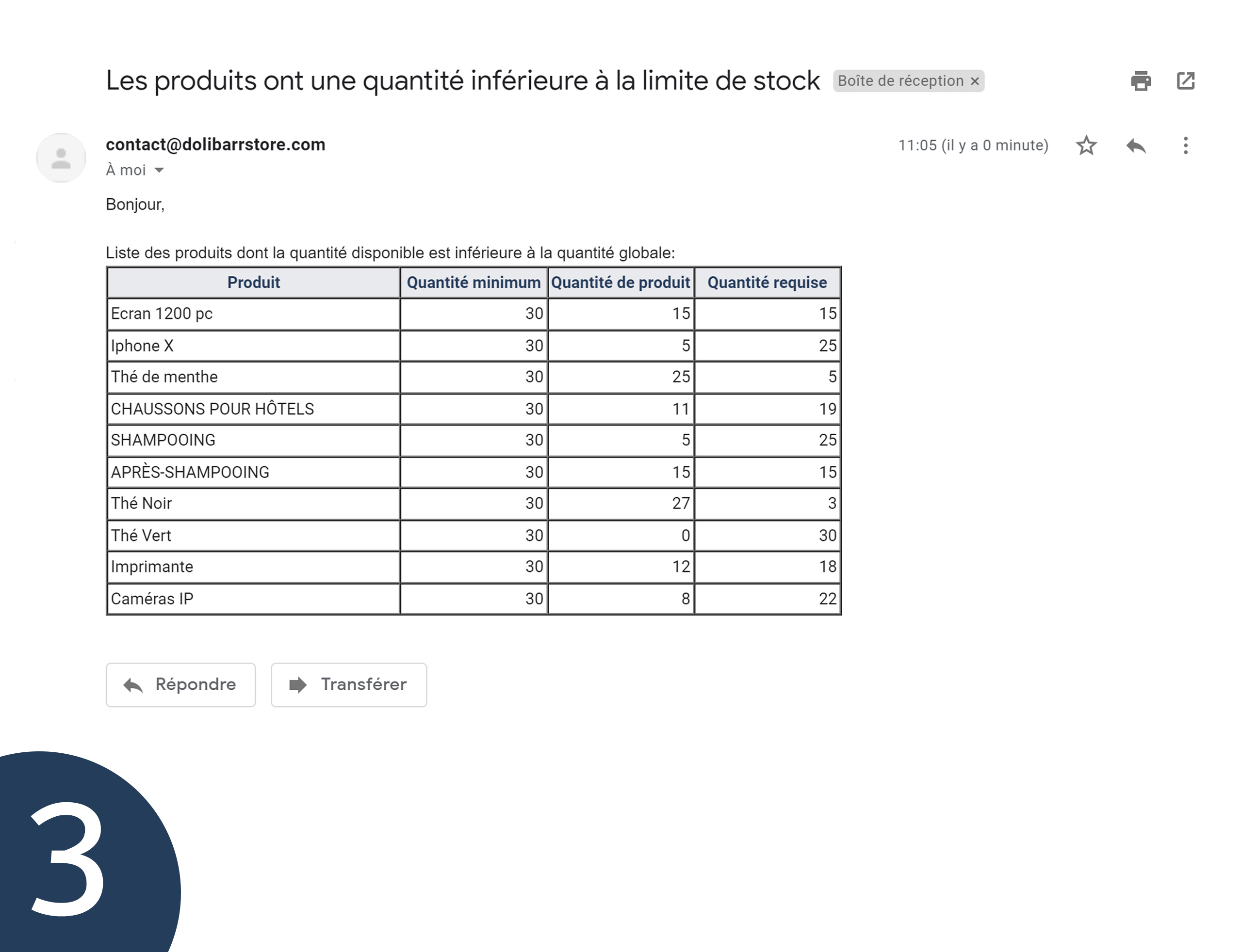 User can get list of products with their current quantity and their required quantity in stock inventory as alert in email minimum stock Reminder.