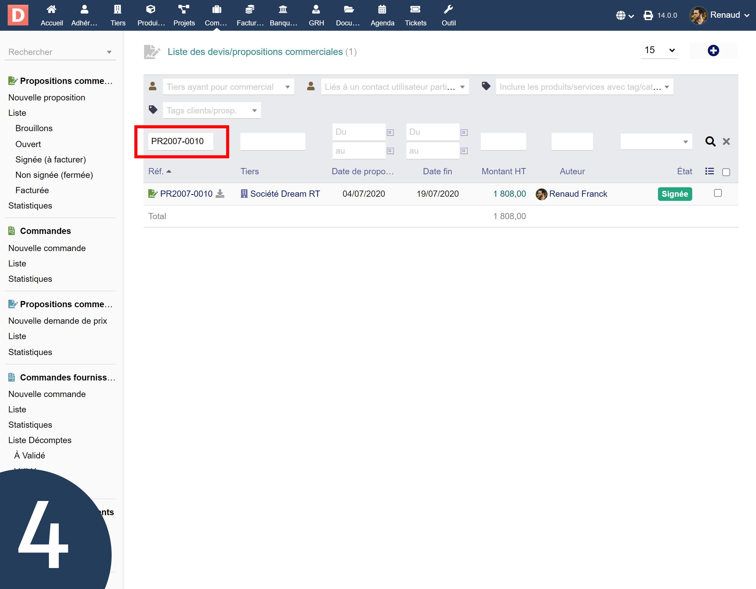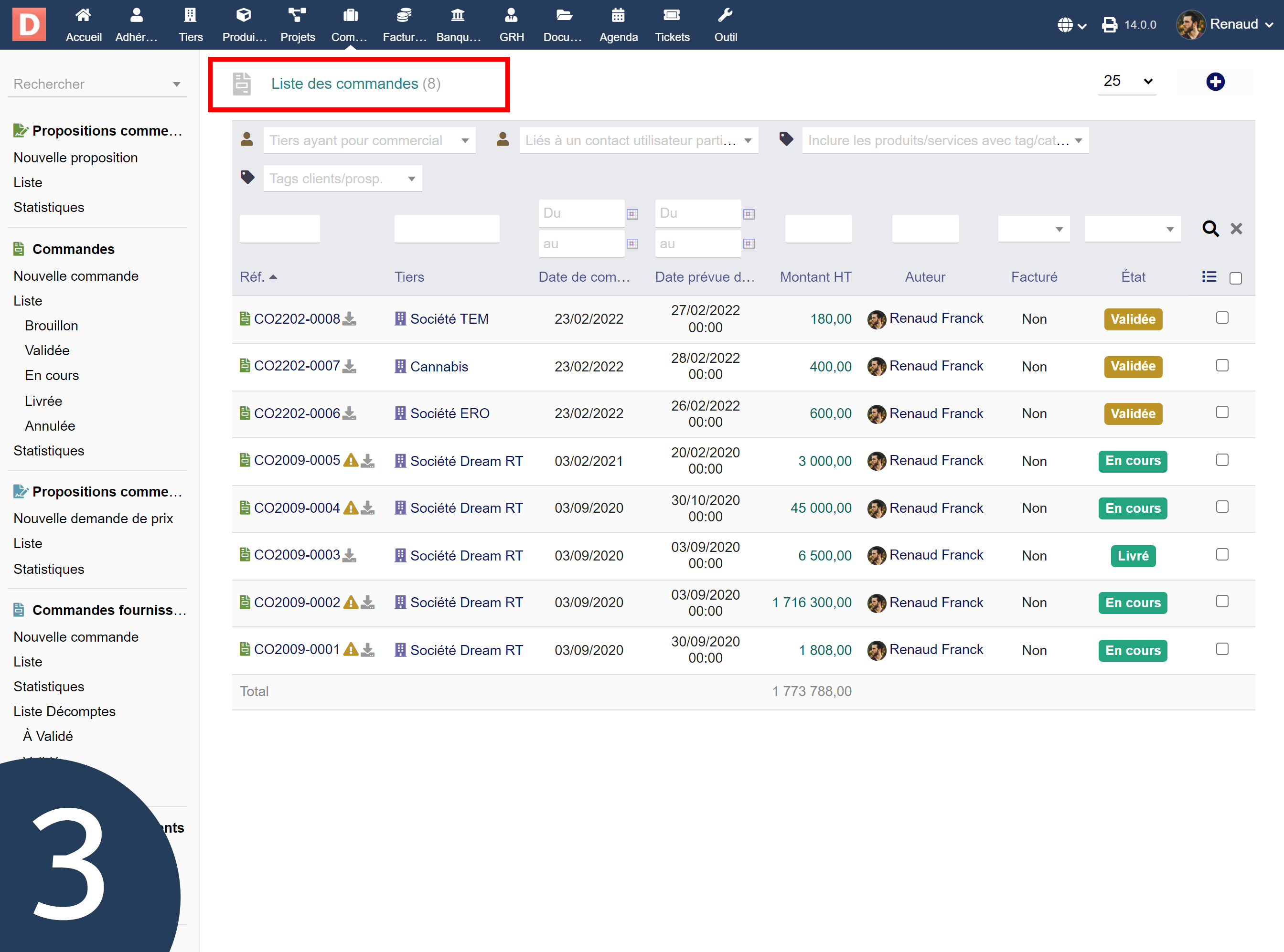 Le module fonctionne même si l’utilisateur navigue vers d’autres menus comme les commandes, factures ou projets.