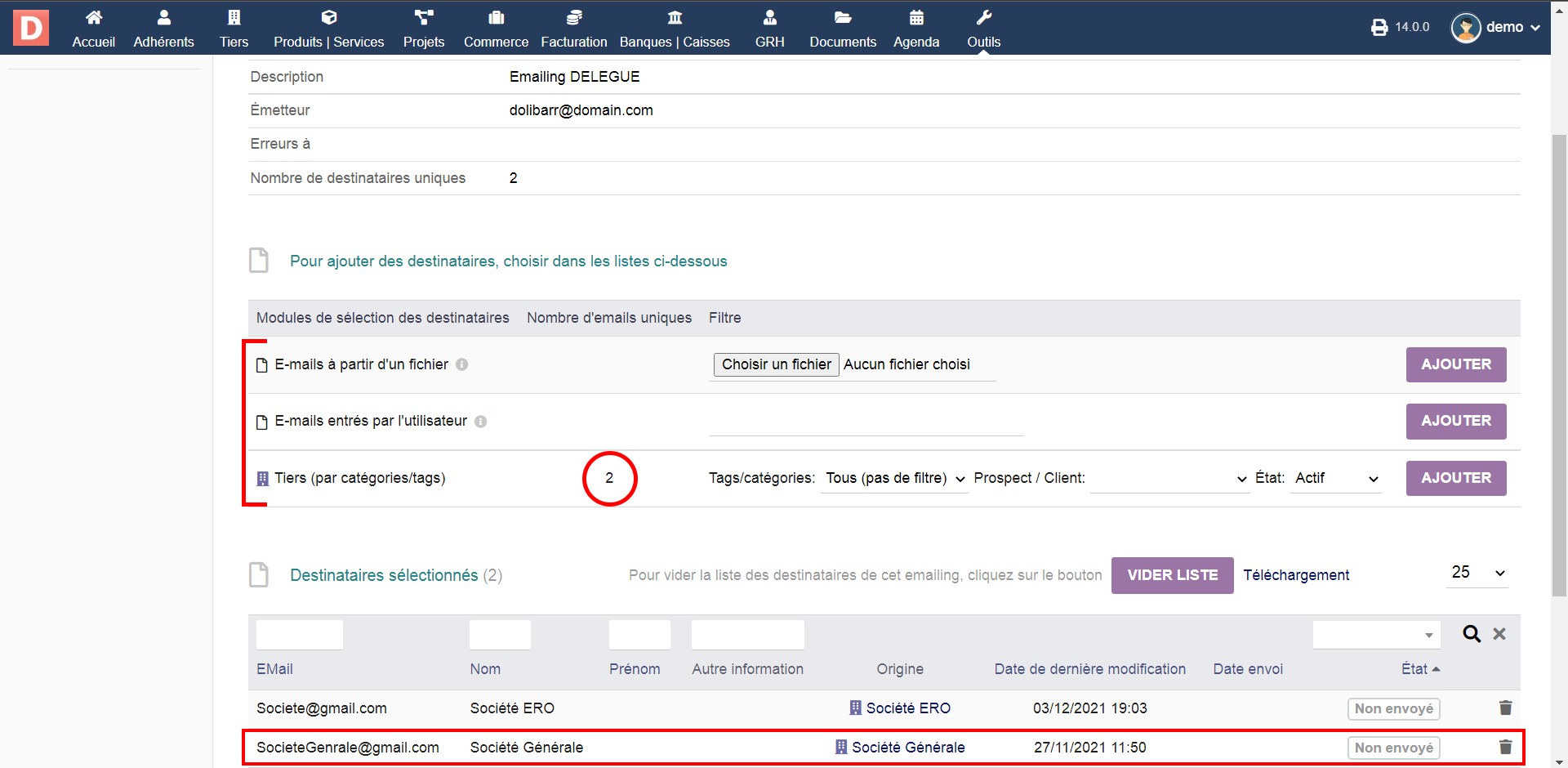 Le module Limite mailing pour les délégués empêche un délégué d’envoyer des emailings à des clients qui ne lui sont pas attribués.