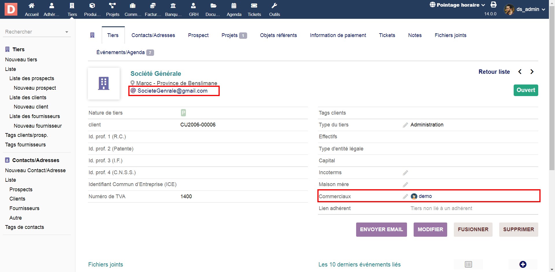 Lorsqu’un délégué crée un emailing, le module vérifie automatiquement que chaque destinataire est un client dont il est le commercial assigné.