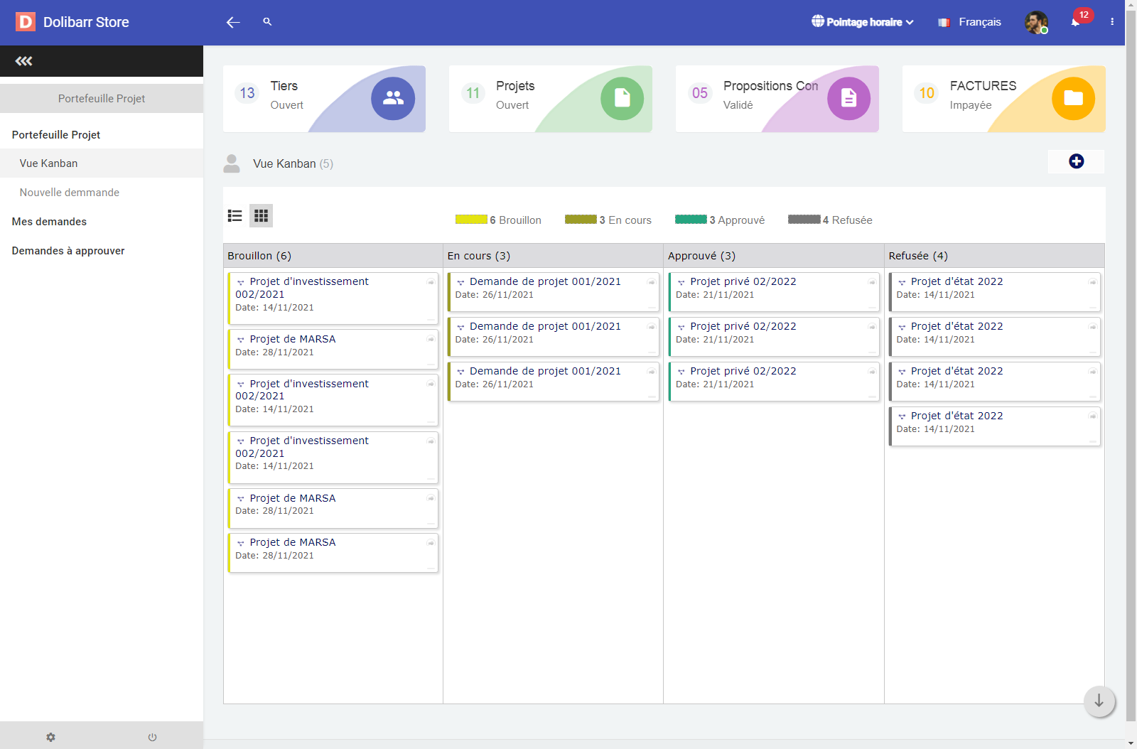 The Project Portfolio module transforms Dolibarr into a true project management and decision-making tool. It centralizes all project requests, simplifies evaluation and tracking, and offers a modern, intuitive user experience. With its multiple views (table, Kanban, detailed sheets), smart filters, and approval workflow, it becomes an essential module for any organization looking to effectively structure its project management process.