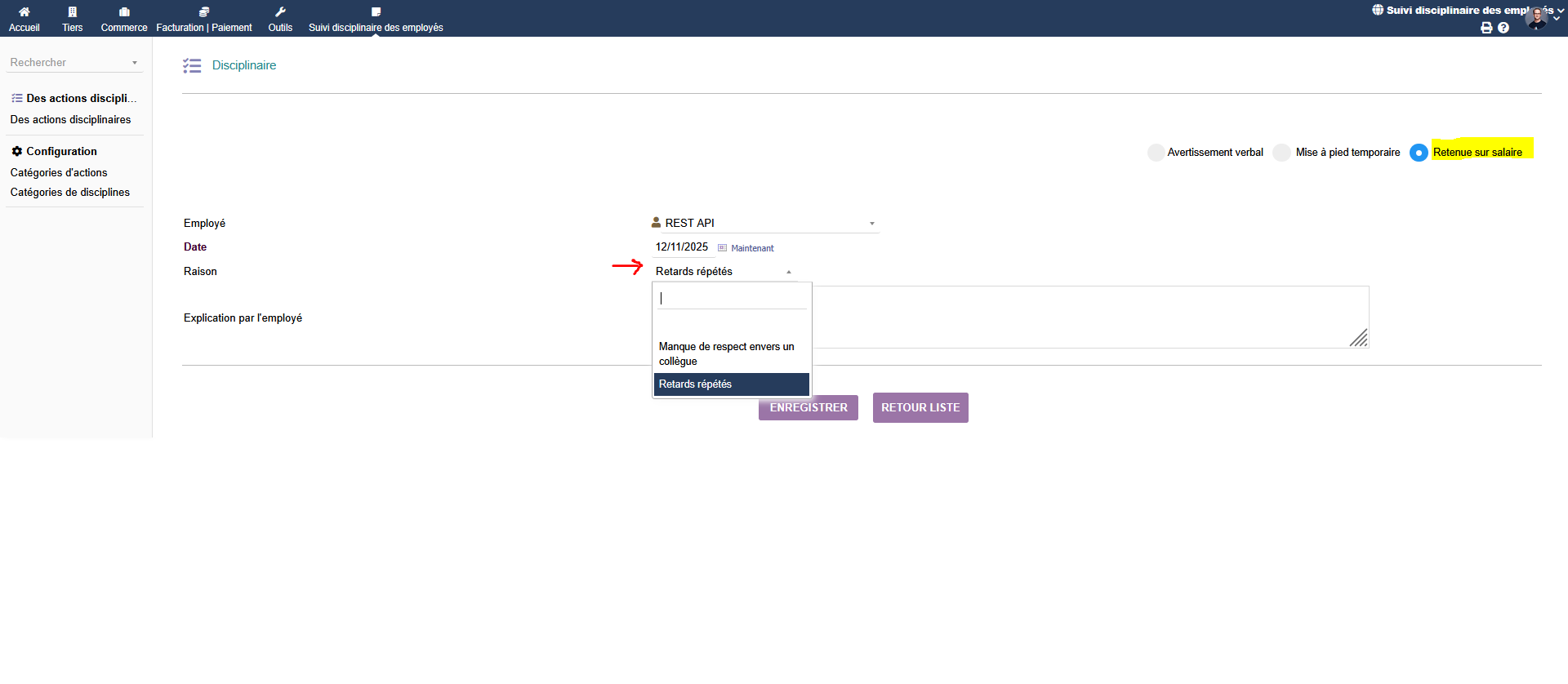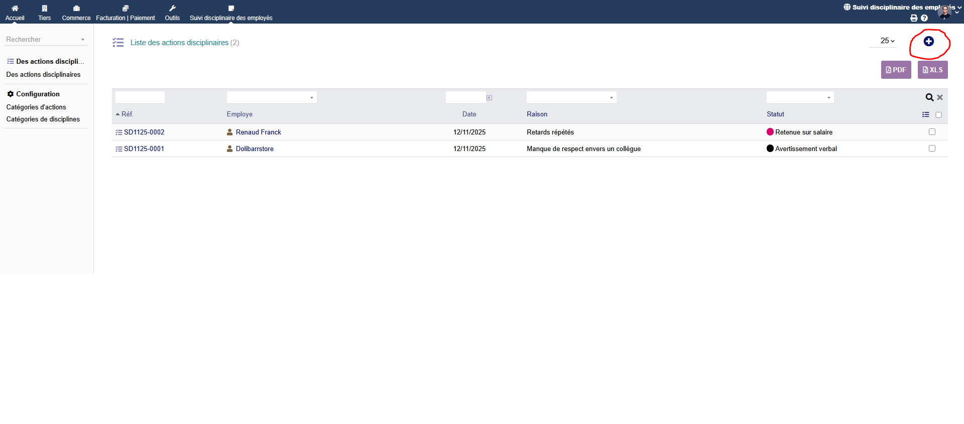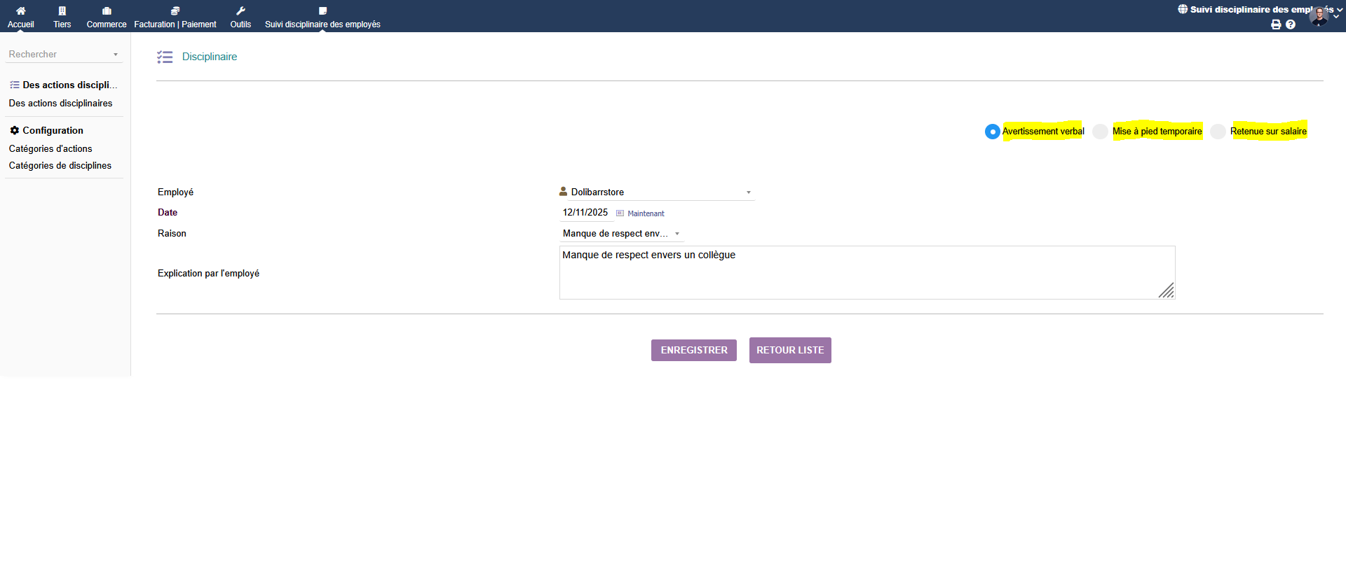 El módulo “Seguimiento disciplinario de los empleados” añade a Dolibarr una solución completa de RR. HH., permitiendo: