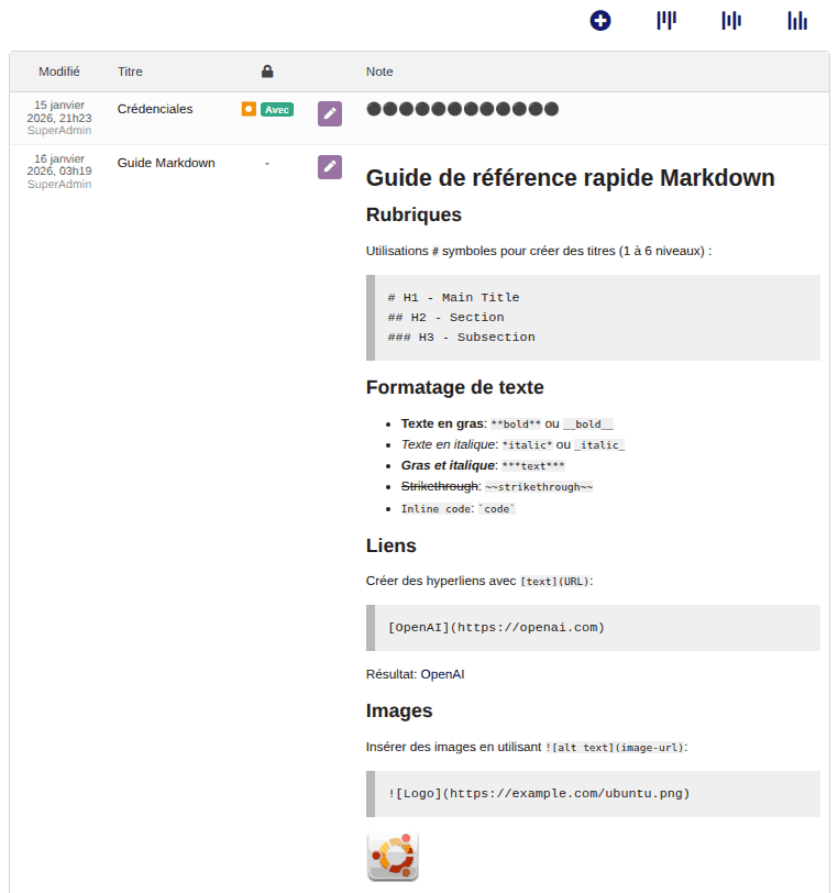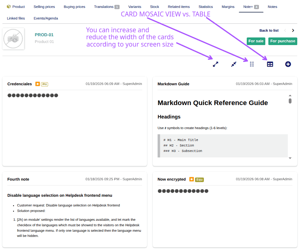 Ce module complète la fonctionnalité native qui permet d'ajouter des Notes à presque n'importe quel élément à travers tout l'ERP. Mais avec les avantages suivants :
