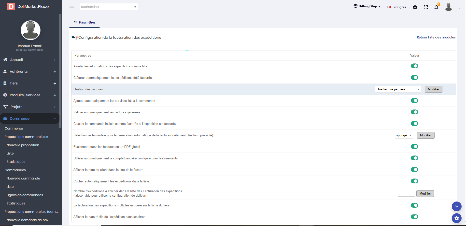BillingShip is a module designed to simplify the invoicing process by allowing you to associate all your shipments with a single invoice for the same customer. This module facilitates the management of shipments by consolidating shipping costs, which allows you to save time when planning your invoicing operations.