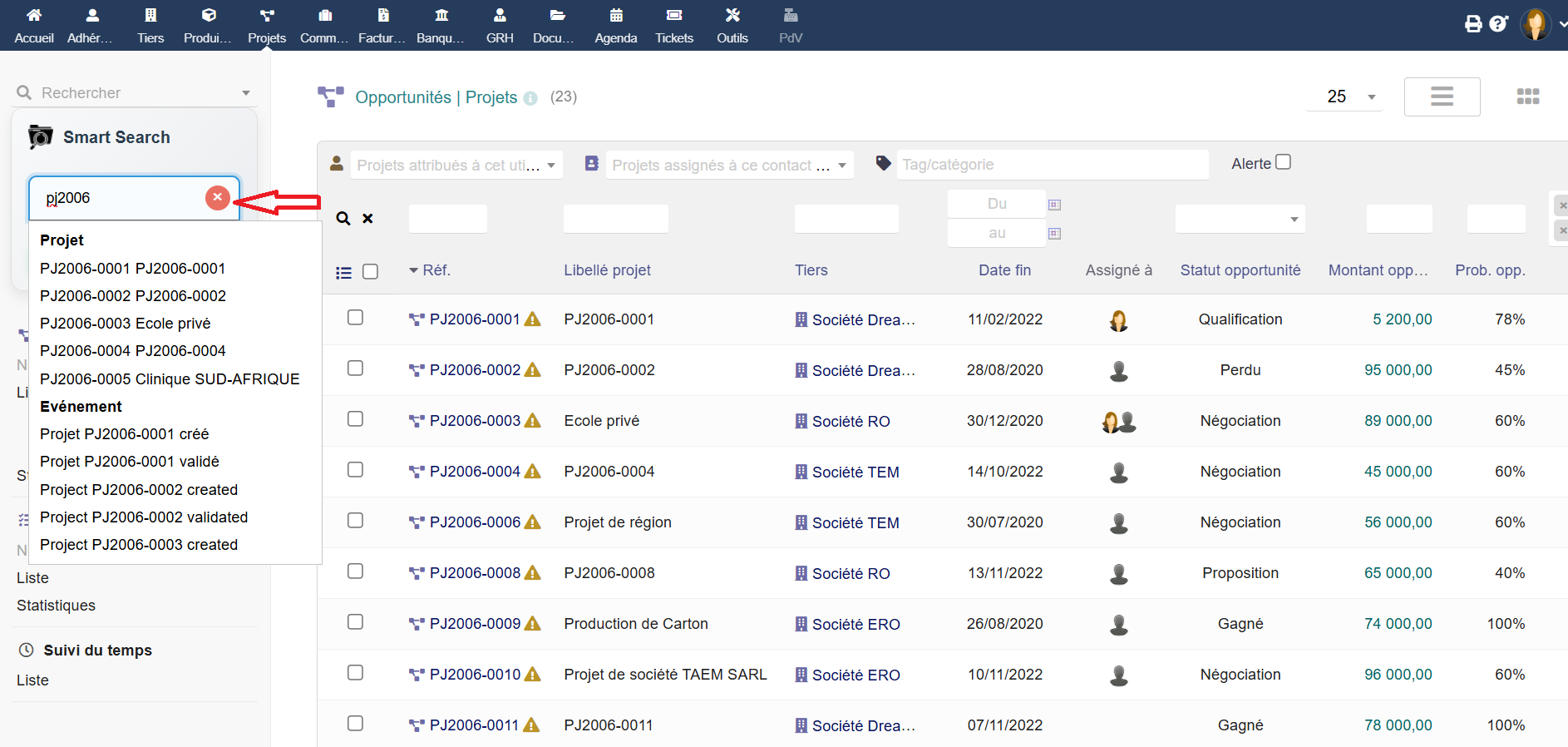 Smart Search Dolibarr enhances the default search functionality by introducing advanced features such as breadcrumb navigation, comprehensive search across additional attributes, a dedicated results overview page, direct links to selected items, and a complete replacement of the standard tool for improved usability and user experience.