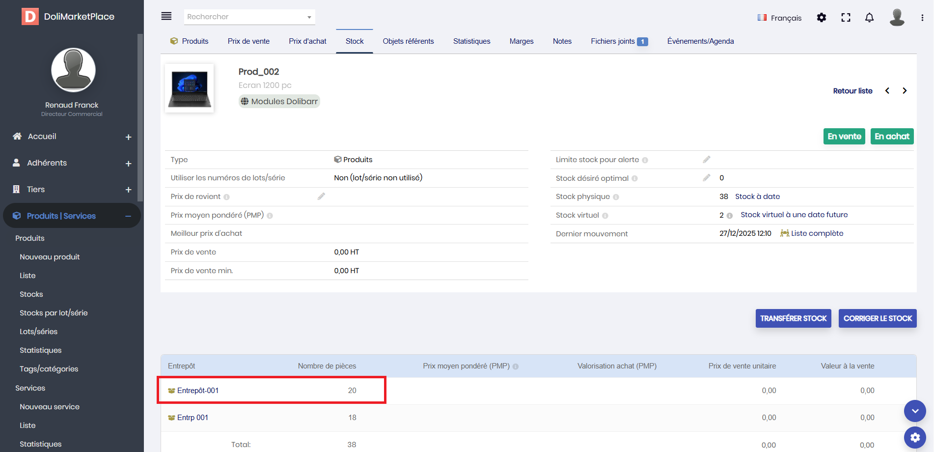 2- Real-Time Stock Status: View the status of your physical stock as recorded in Dolibarr, allowing you to make informed decisions based on current data.