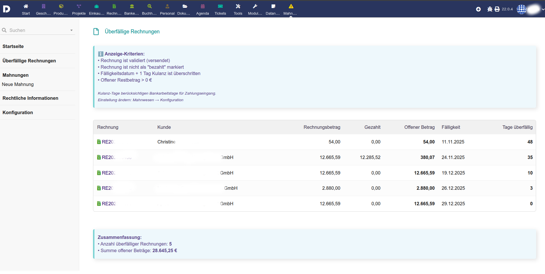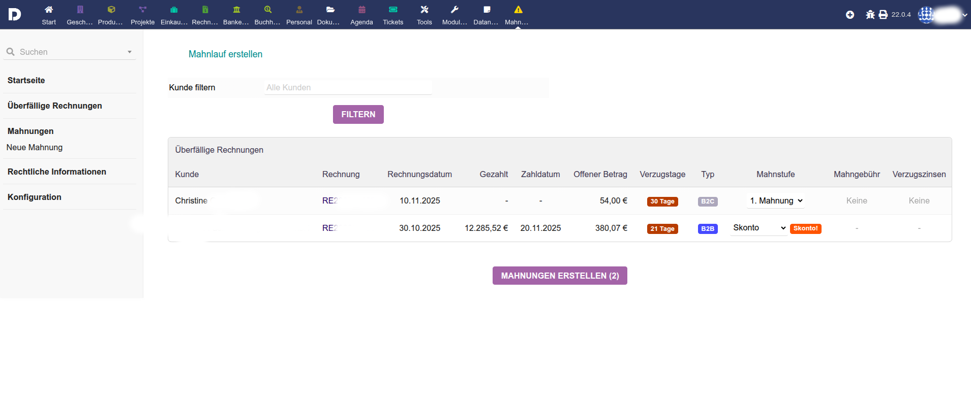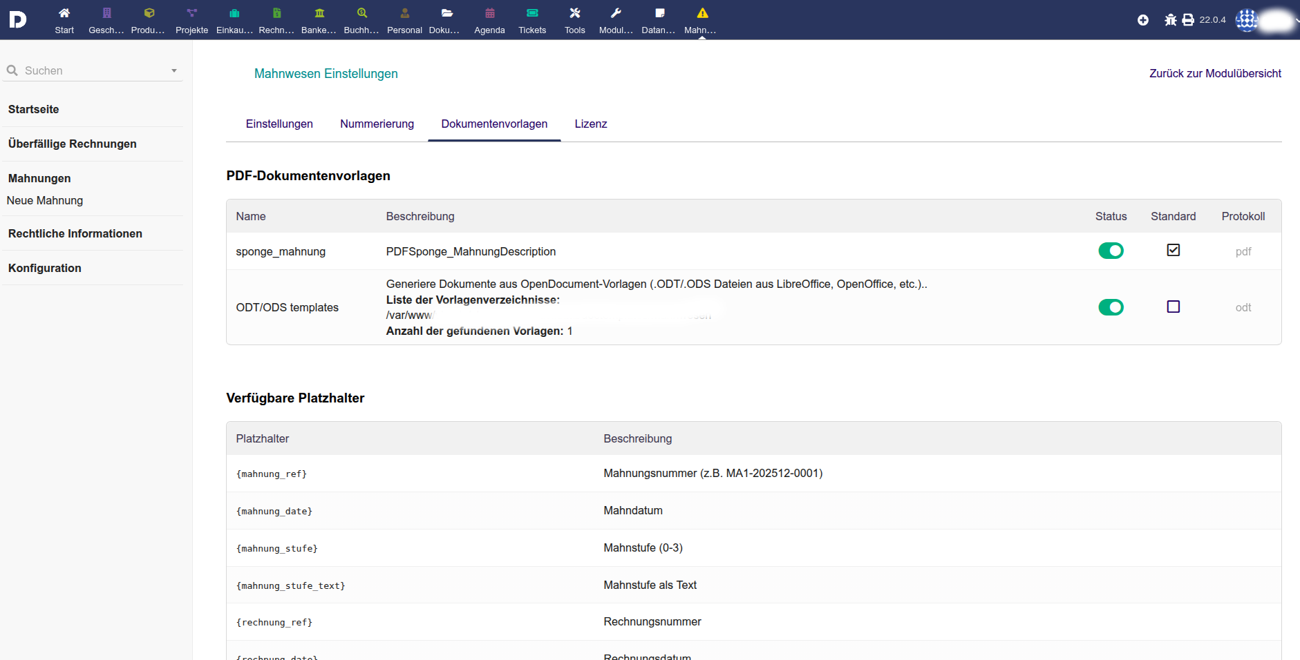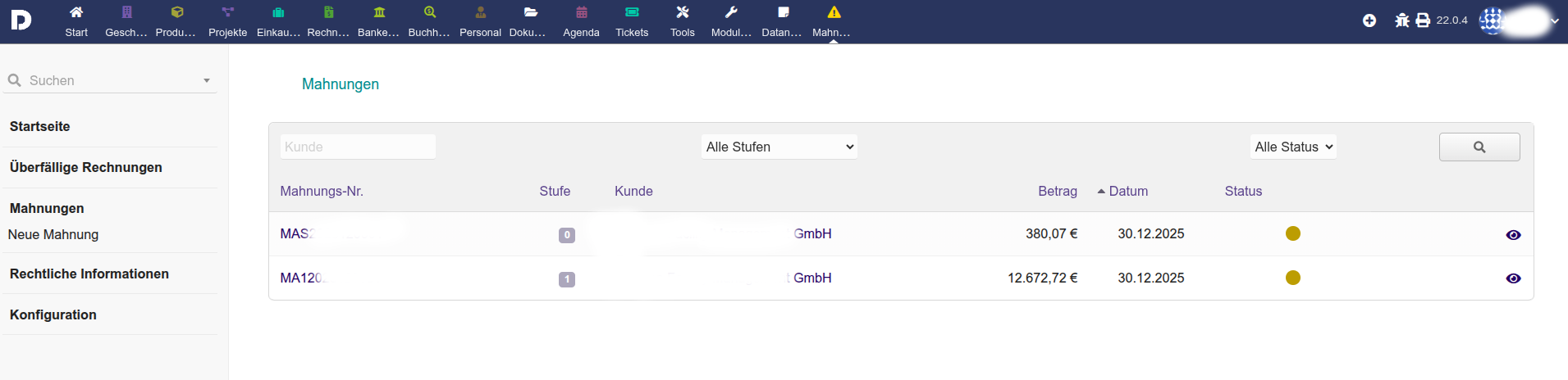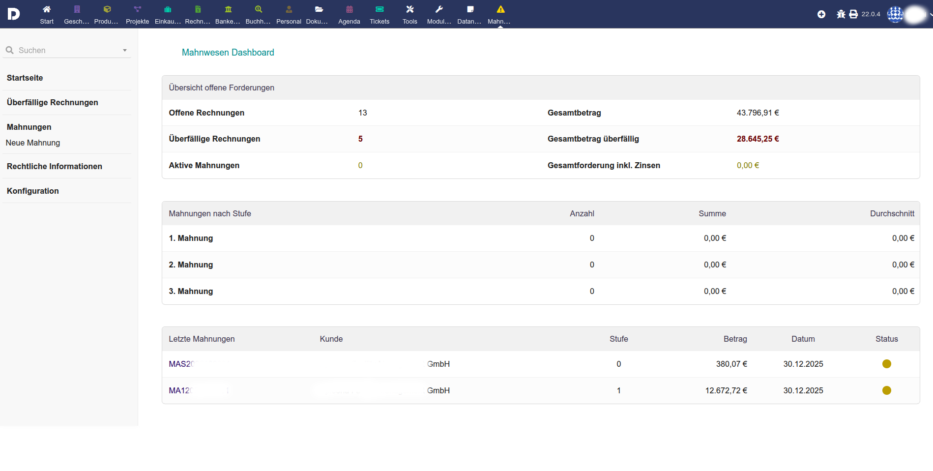 Professional German dunning management for Dolibarr. Automated reminders, interest calculation according to § 288 BGB, PDF generation & email dispatch.