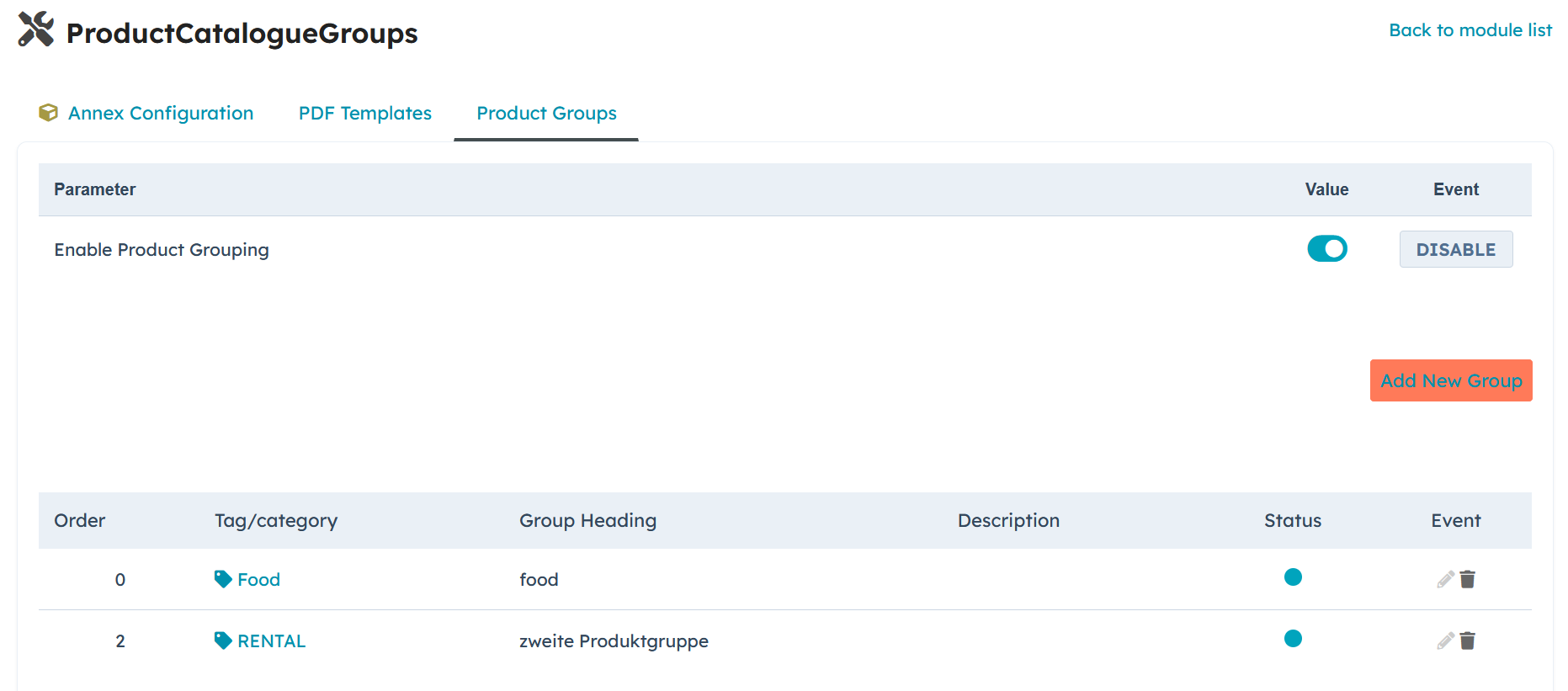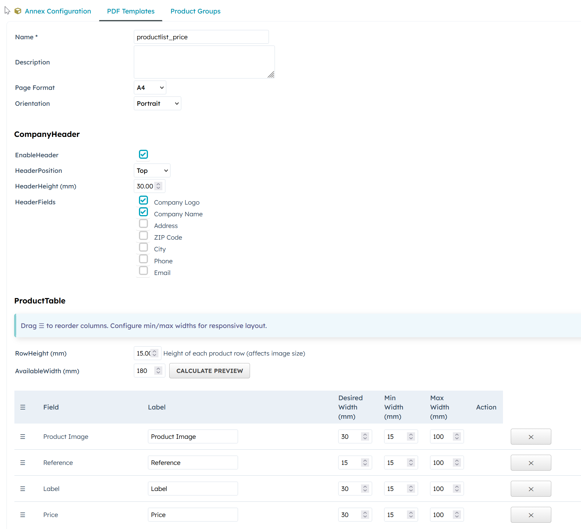 4. Configure field settings in **Products → Product Catalogue → Configuration**