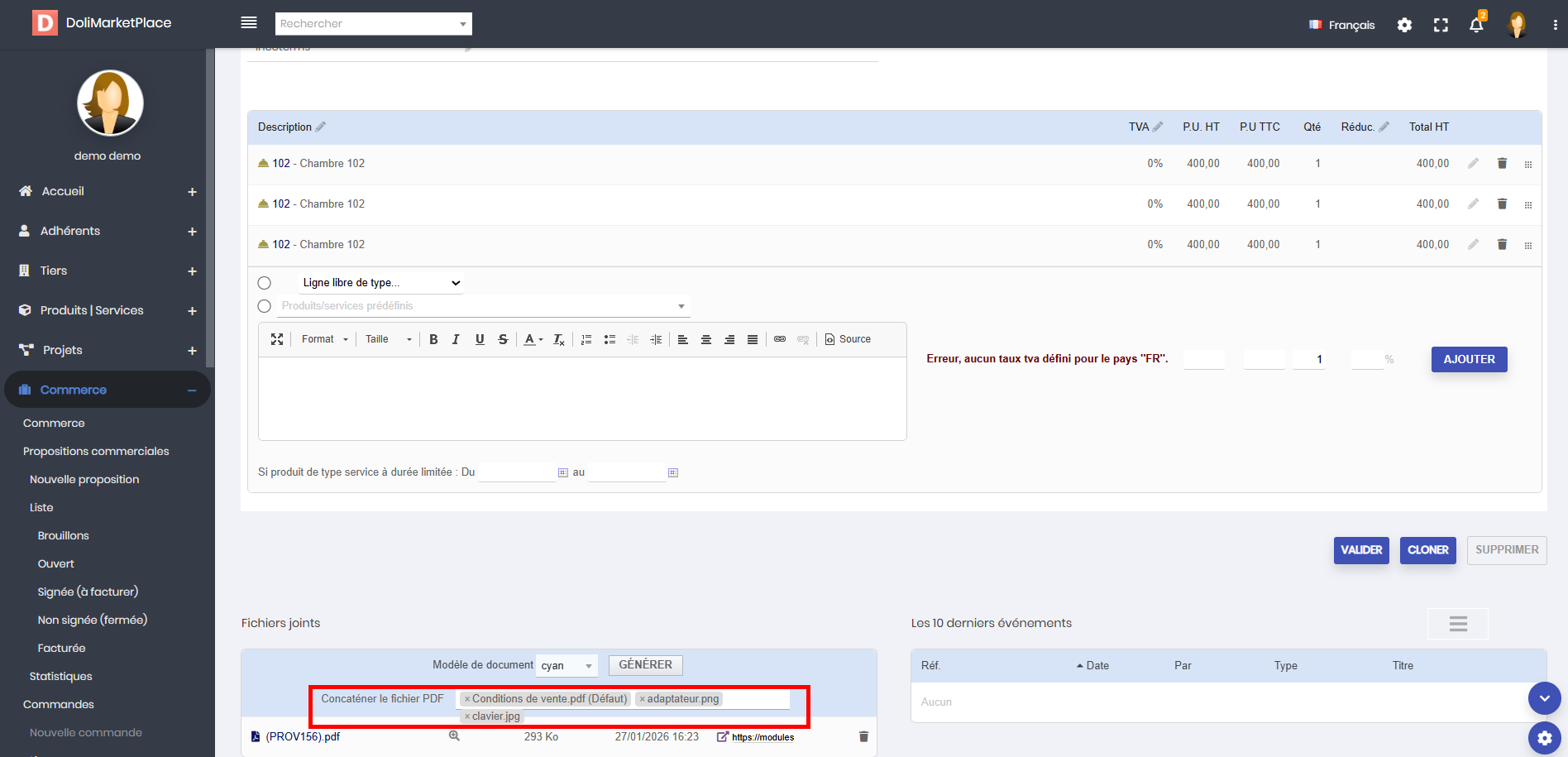 With PDF Merger Pro, optimize your workflow, improve document presentation, and ensure clients receive fully informative and professional PDFs in Dolibarr.