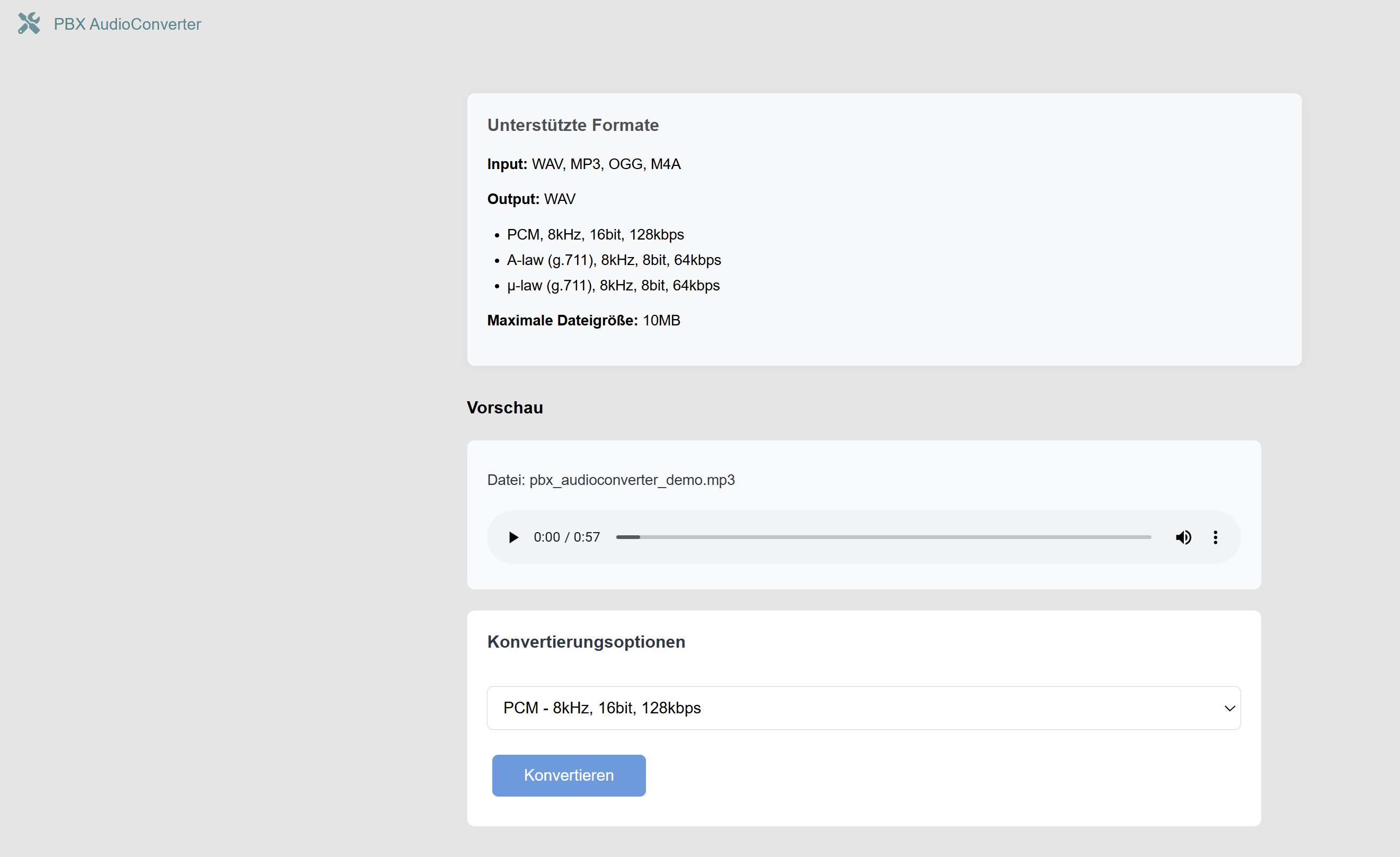 PBX AudioConverter is a Dolibarr module that converts MP3, OGG, M4A and WAV files into PBX‑compatible WAV formats optimized for telephony systems.