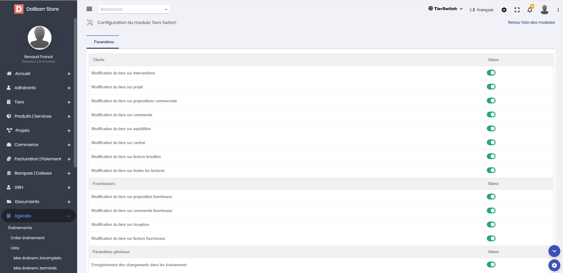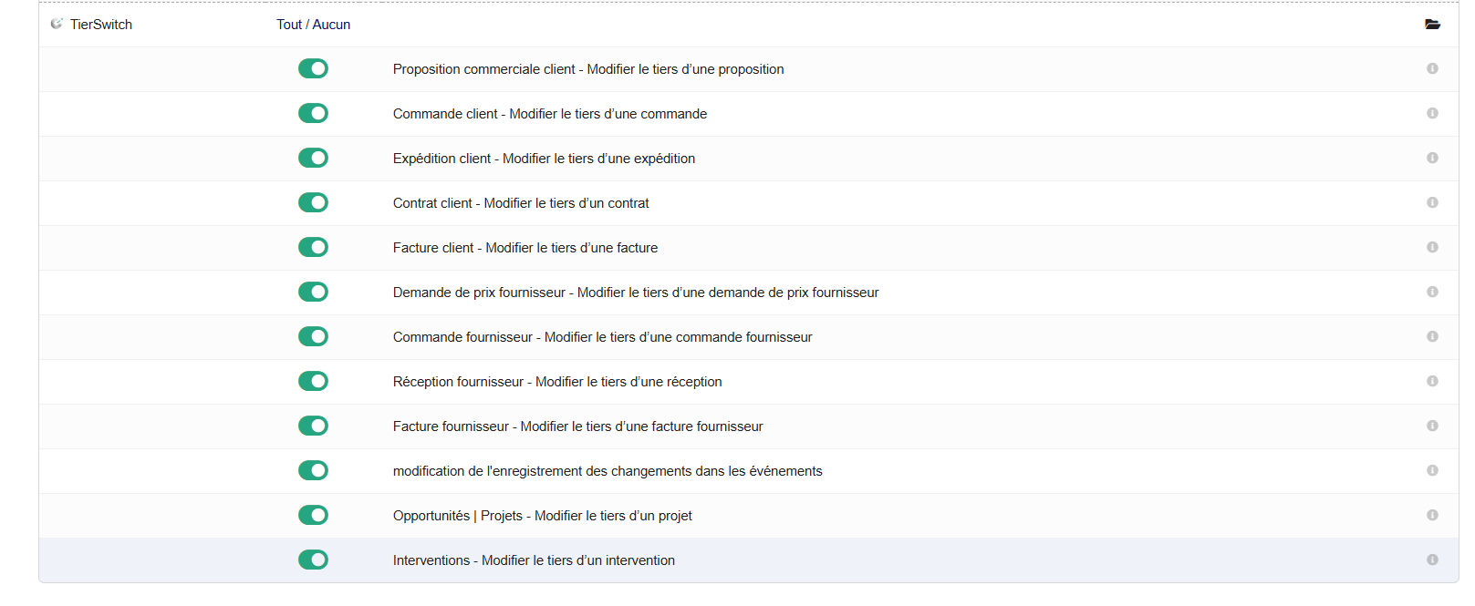 El módulo TierSwitch para Dolibarr simplifica la gestión de terceros permitiendo editar fácilmente clientes y proveedores en varios documentos con un solo clic. Ya sea en un presupuesto, pedido, factura, contrato, hoja de envío, proyecto o intervención, TierSwitch hace que actualizar la información de terceros sea rápido y sencillo.