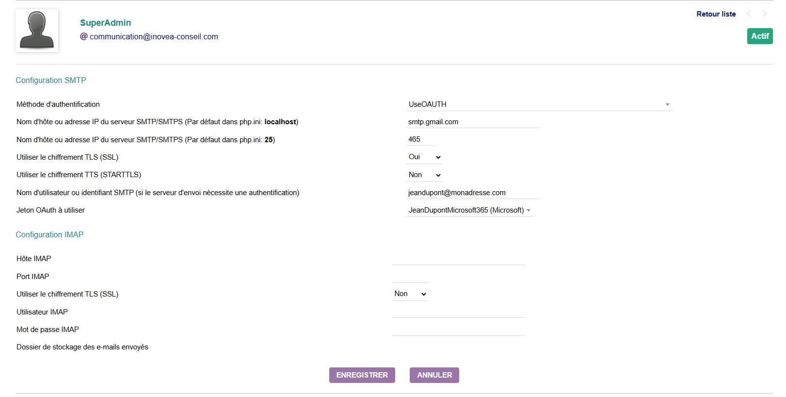 •    SMTP configuration per user in Dolibarr