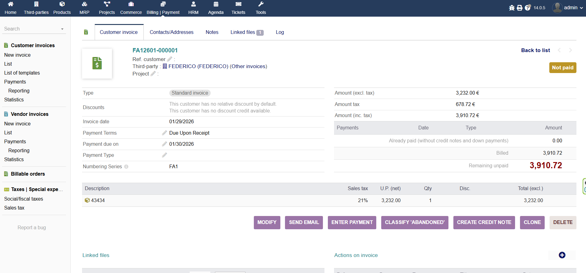 Verwalten Sie mehrere Nummerierungsserien fuer alle Ihre Dokumente mit der nativen Dolibarr-Integration: einfach, leistungsstark und vollstaendig an die Beduerfnisse jedes Unternehmens angepasst. Jedes Unternehmen, jede Filiale oder jeder Kundentyp kann seine eigene Nummerierungsserie haben.