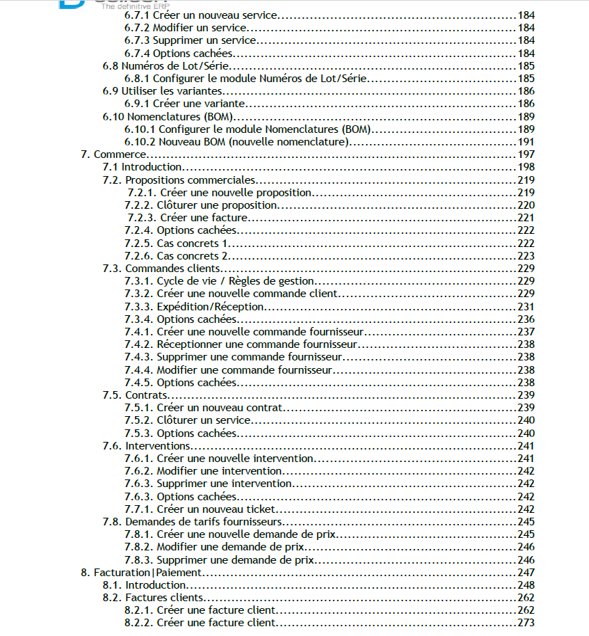 WARNING: This is not a final version, this guide (pdf format, 373 pages) is constantly updated, therefore we recommend that you wear your attention to the new versions that follow the evolution of Dolibarr and will be available to users of dolistore