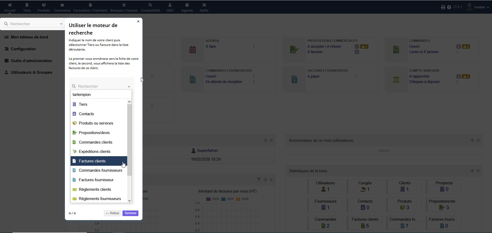 This module makes it easier for your users to get started with Dolibarr, especially new team members or those who are new to the software. This module also allows you to present operating processes in a contextualized way, particularly for specific modules.