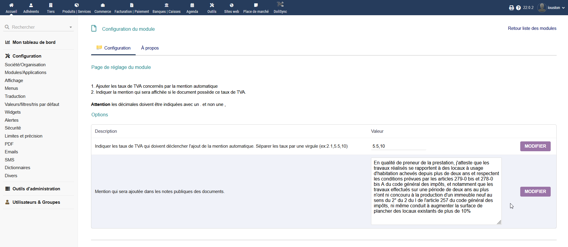 This module allows you to display a notice on the PDFs of your documents when a reduced VAT rate is detected.