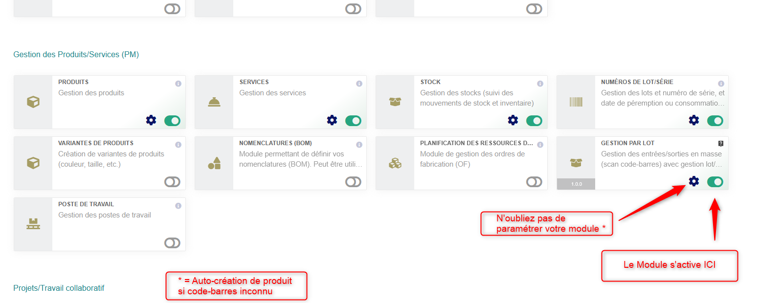 Bulk stock in/out by barcode scanning, with lot and serial numbers support (1 serial = 1 item).
