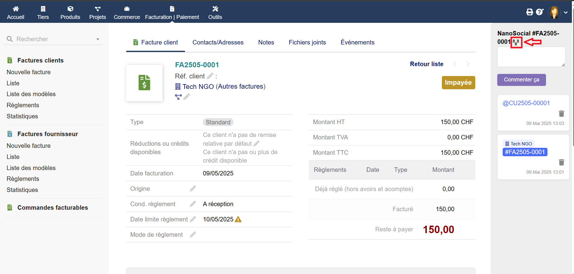El módulo Connection Hub para Dolibarr ERP & CRM centraliza y facilita la gestión de conexiones e interacciones dentro del sistema. Proporciona una vista completa de los comentarios y enlaces asociados, con acciones rápidas integradas.