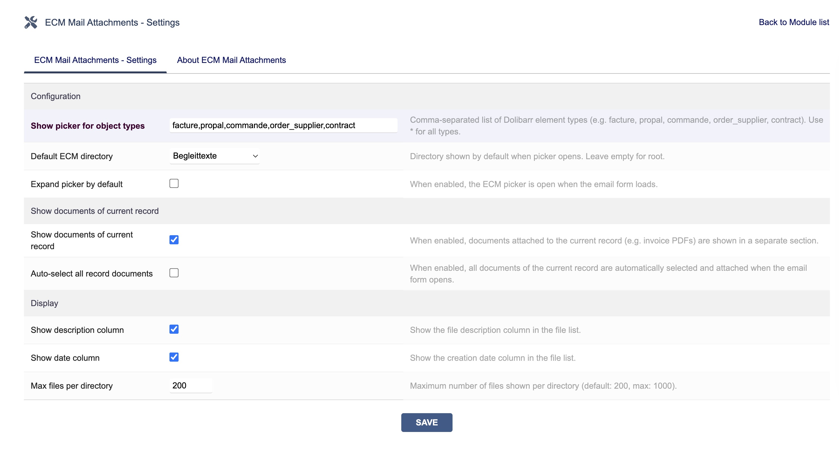 Ergänzt Dolibarrs E-Mail-Formulare um einen ECM-Dokument-Picker. Verzeichnisbaum durchsuchen, Dateien per AJAX anhängen und bereits mit dem Datensatz verknüpfte Dokumente direkt einfügen. Funktioniert mit allen Dolibarr-Objekten, die den formmail-Hook unterstützen.