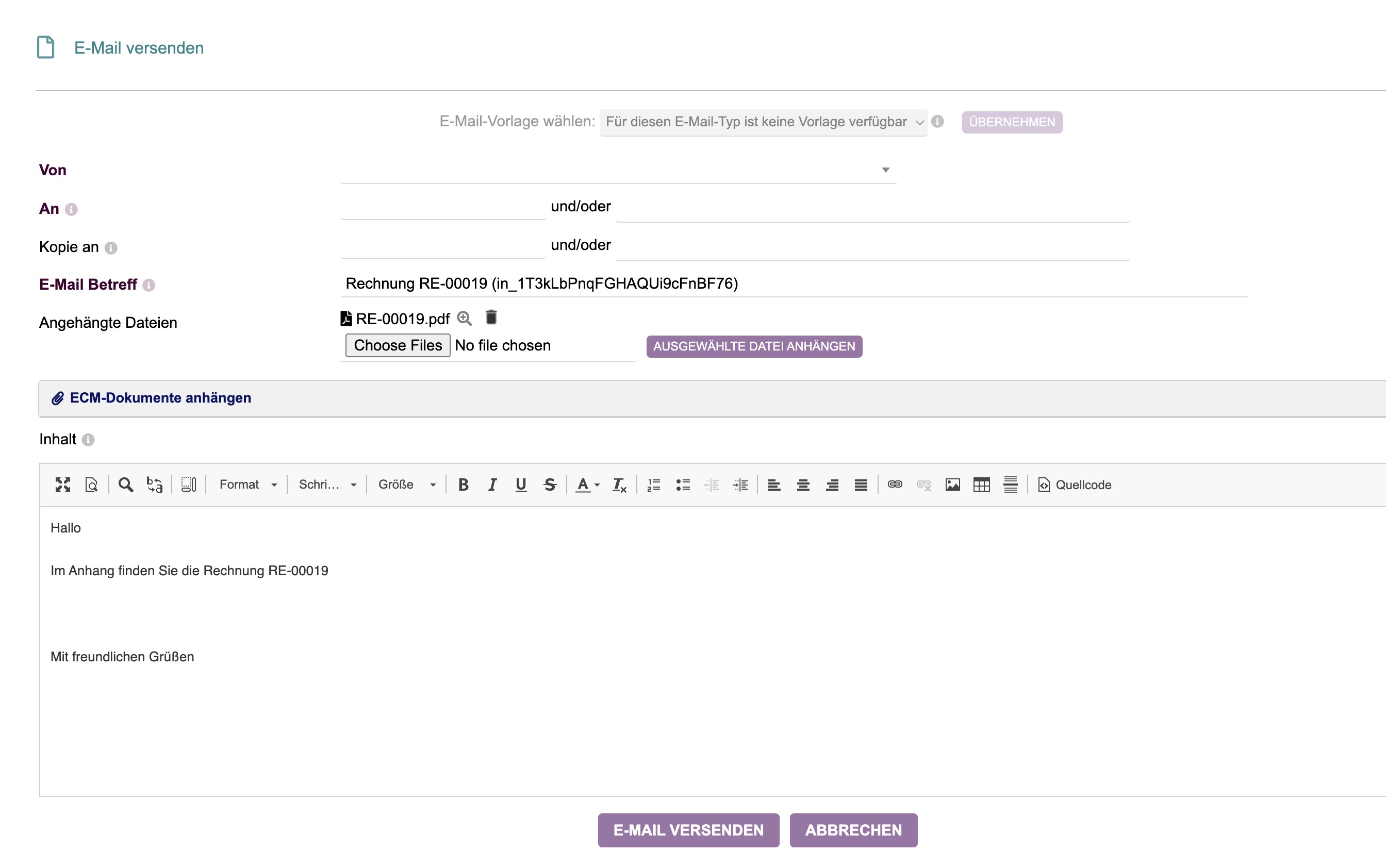ECM-Dokumente direkt in E-Mail-Formulare einfügen – ohne Seiten neu zu laden.