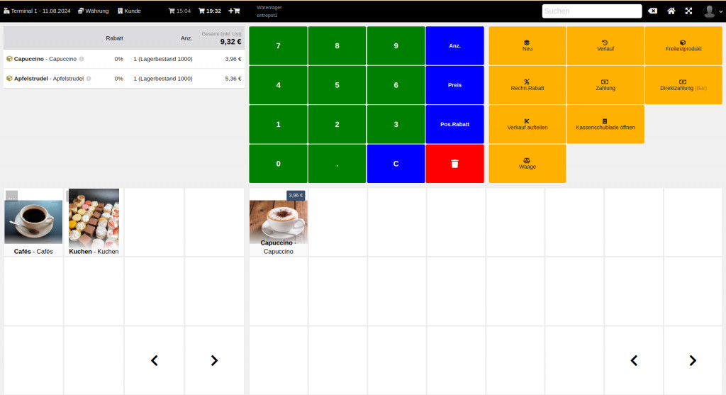 Takepos receipts are now recorded in additional fields of the generated invoice and can be displayed in the product ticket as in the example image.