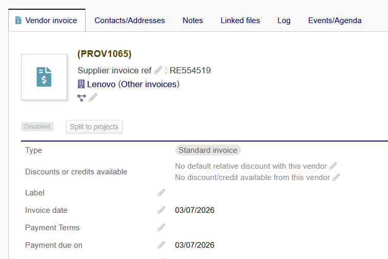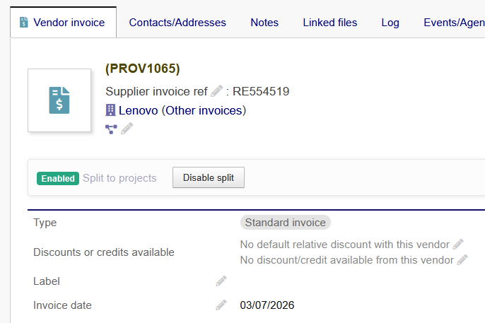 Invoice Line Project Allocation extends Dolibarr by allowing supplier invoice lines to be allocated across multiple projects.