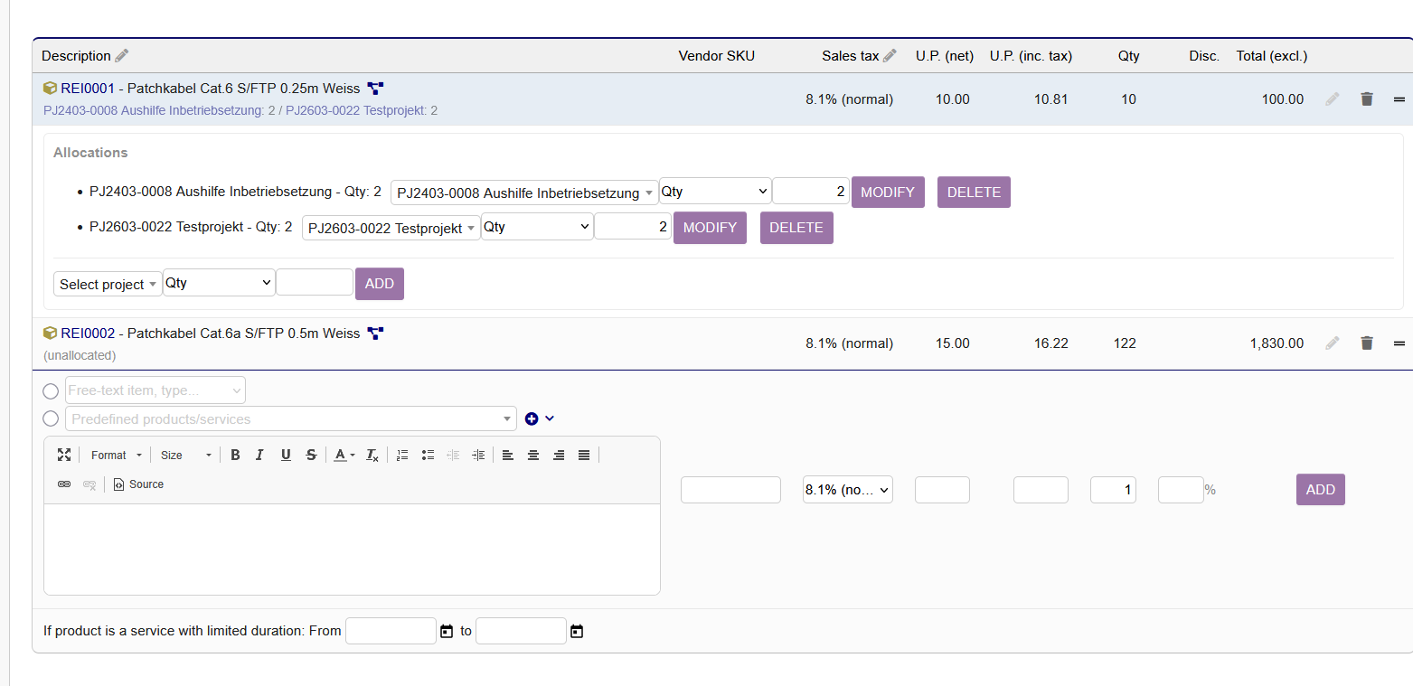 Allocate supplier invoice lines to multiple projects and split costs by quantity or amount for accurate project accounting in Dolibarr.
