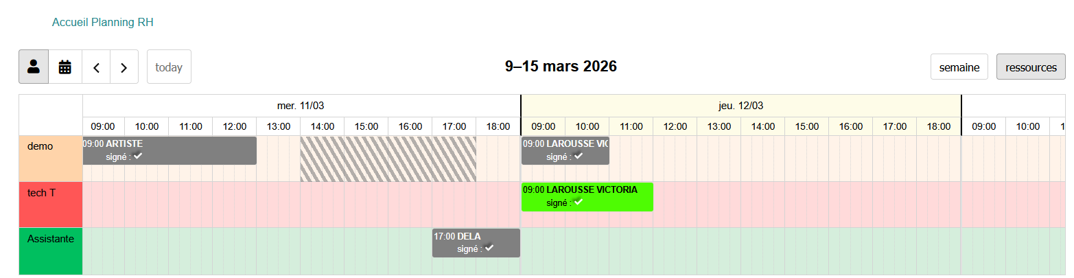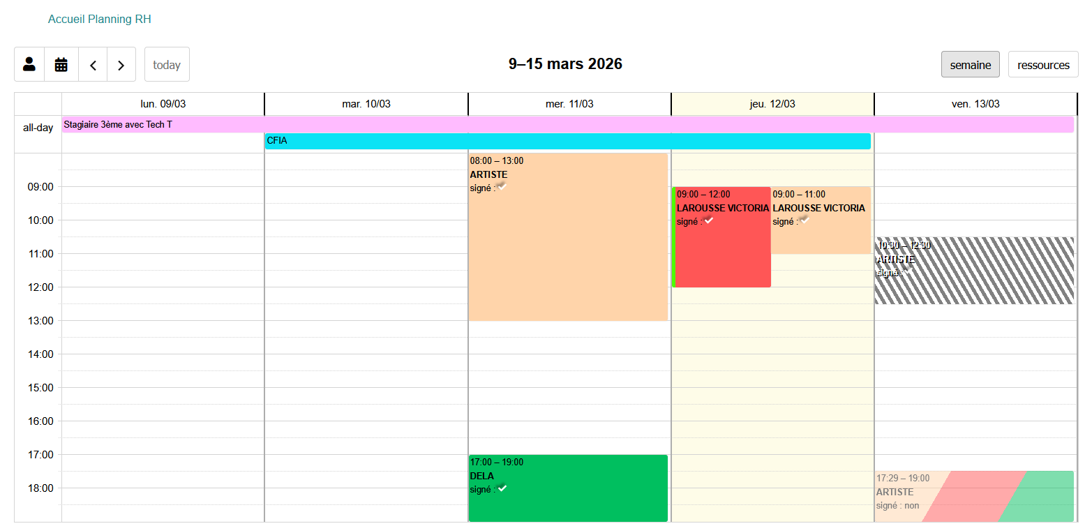 An intervention is scheduled but not yet signed? No problem — the slot is reserved and displayed in a pale color