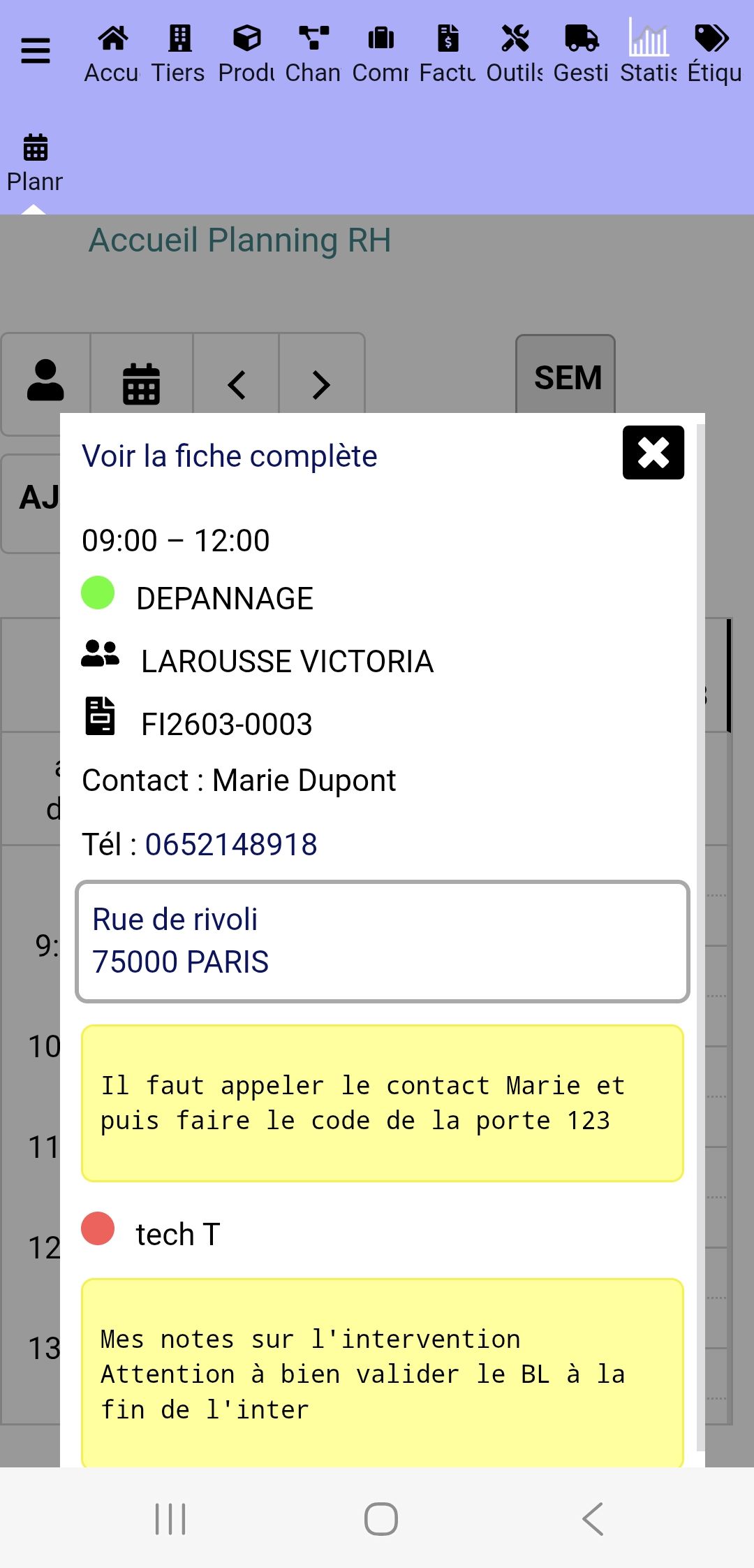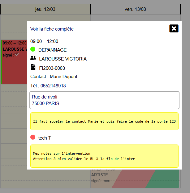 By clicking on a time slot, they instantly see a summary of the intervention and the essential information.