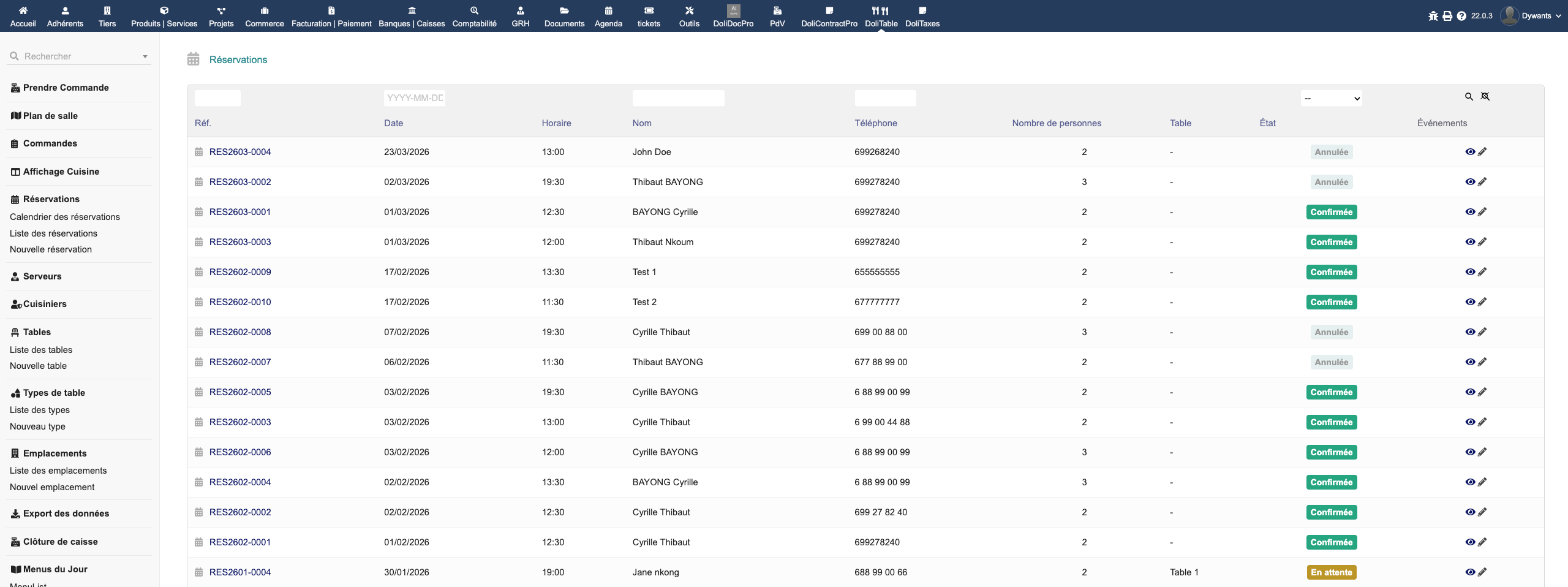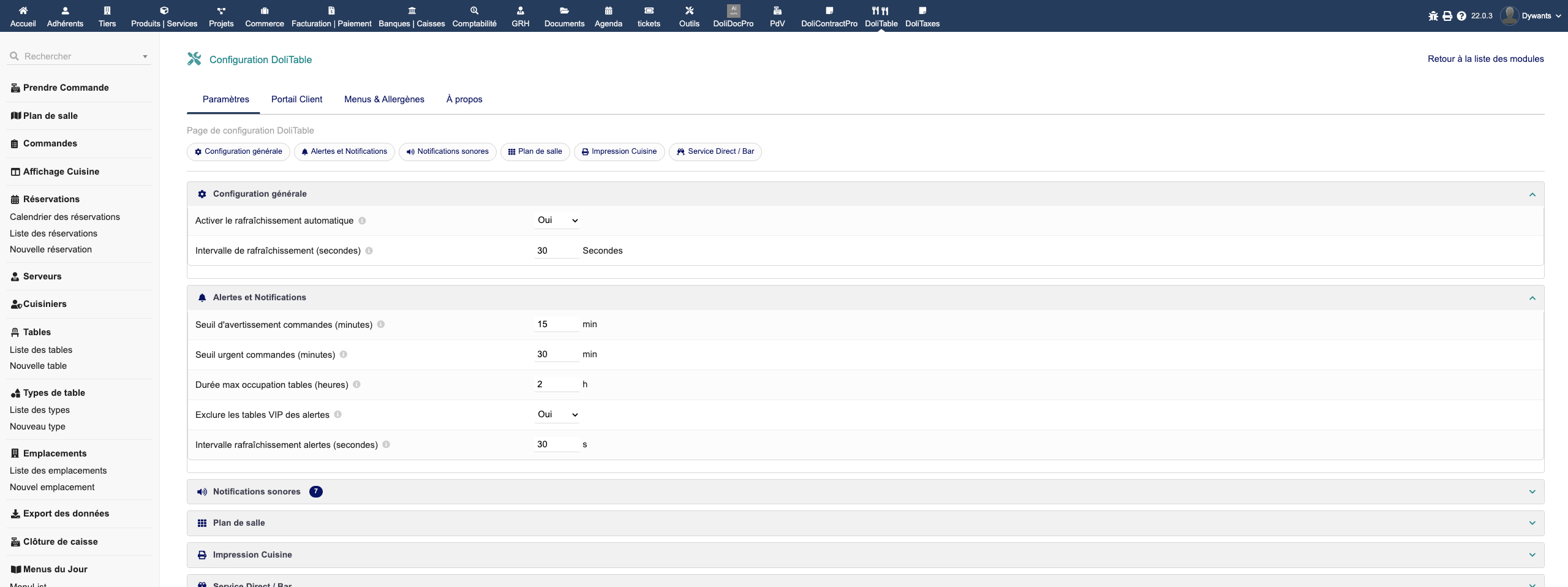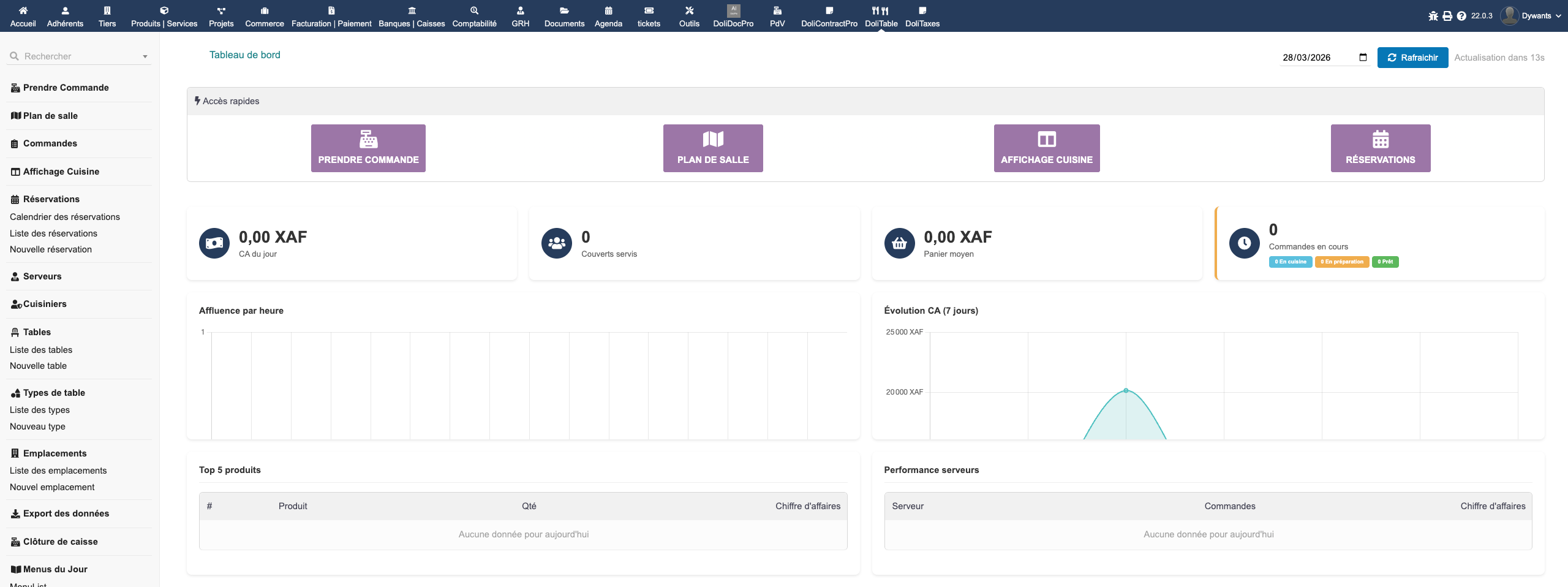 DoliTable turns Dolibarr into a complete restaurant management solution with 15 integrated features: