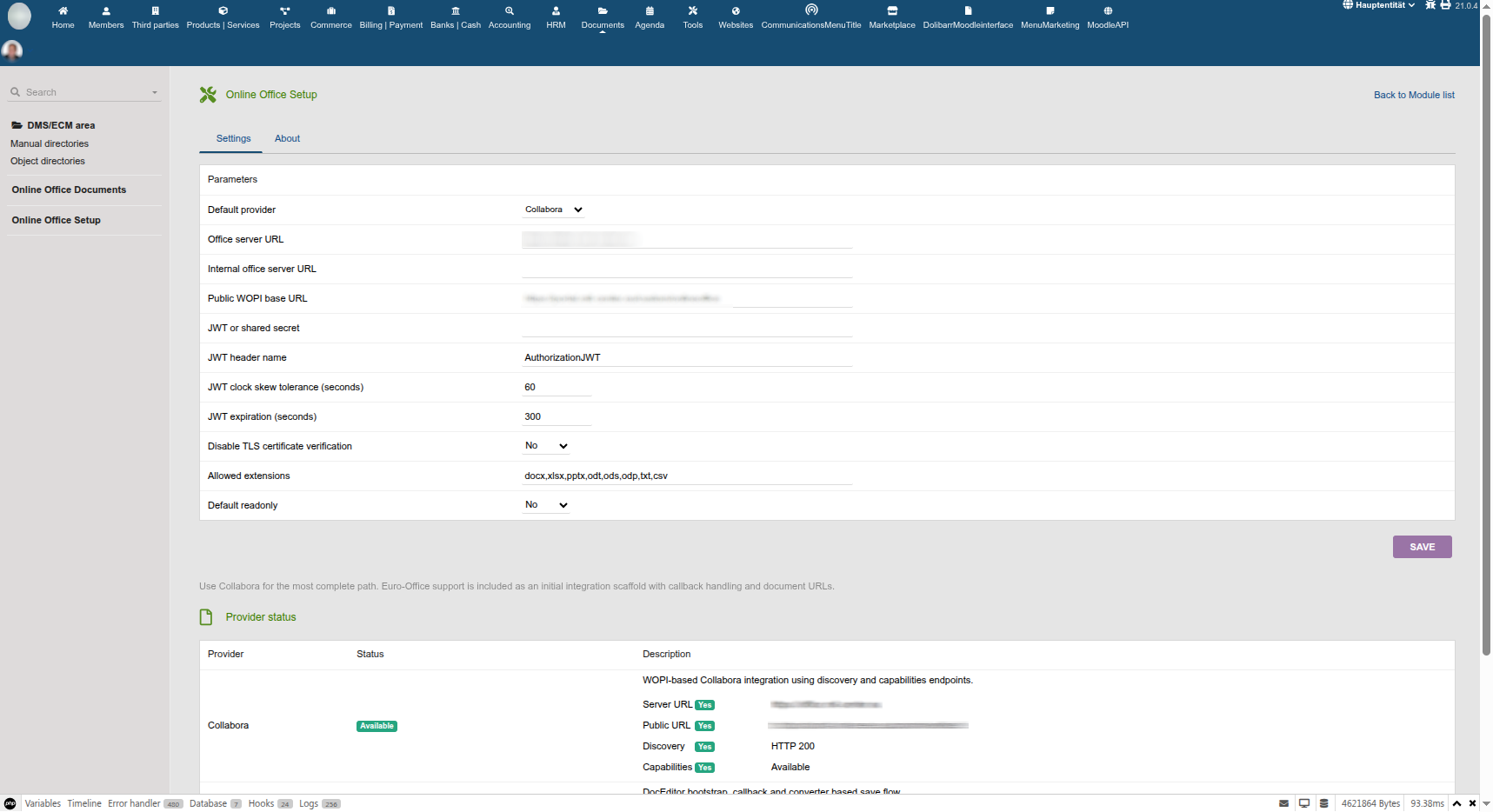OnlineOffice è un modulo di Dolibarr che collega in modo sicuro Dolibarr a un server di office online come Collabora Online. Apri e modifica i documenti direttamente da Dolibarr nel tuo browser, con una gestione centralizzata dei permessi e il salvataggio dei file modificati nuovamente in Dolibarr.