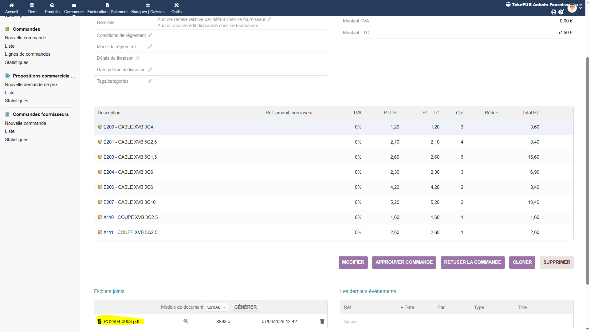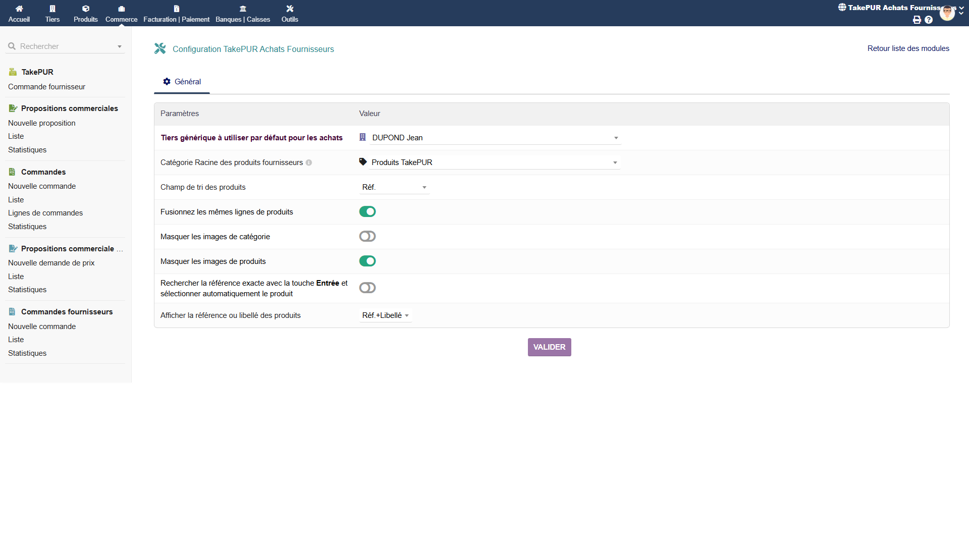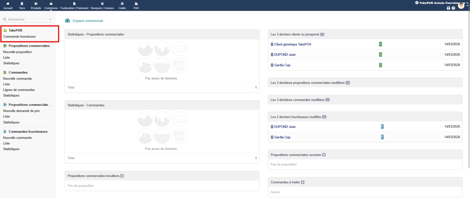 TakePUR brings a modern and ultra-fast interface to Dolibarr ERP CRM for creating supplier orders, inspired by the smooth TakePOS experience. This module is designed to simplify the purchasing process by reducing the number of required steps. It allows users to quickly select a supplier, add products, and generate a supplier order in just a few clicks. TakePUR is particularly suited for environments where purchases are frequent and need to be entered quickly: warehouses, retail, restaurants, or intensive stock management. Main features :