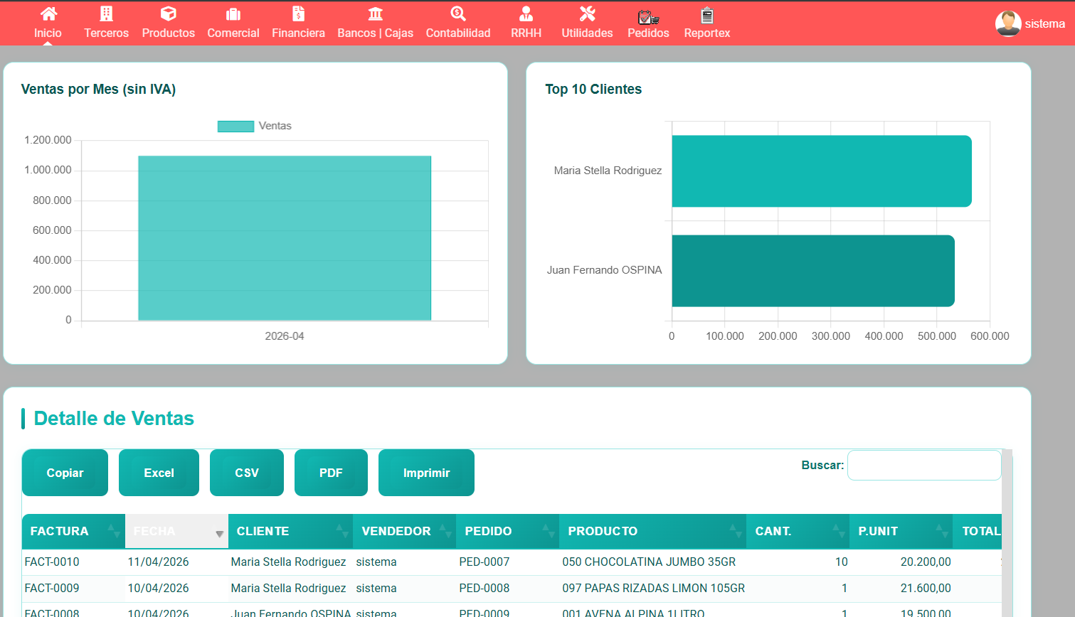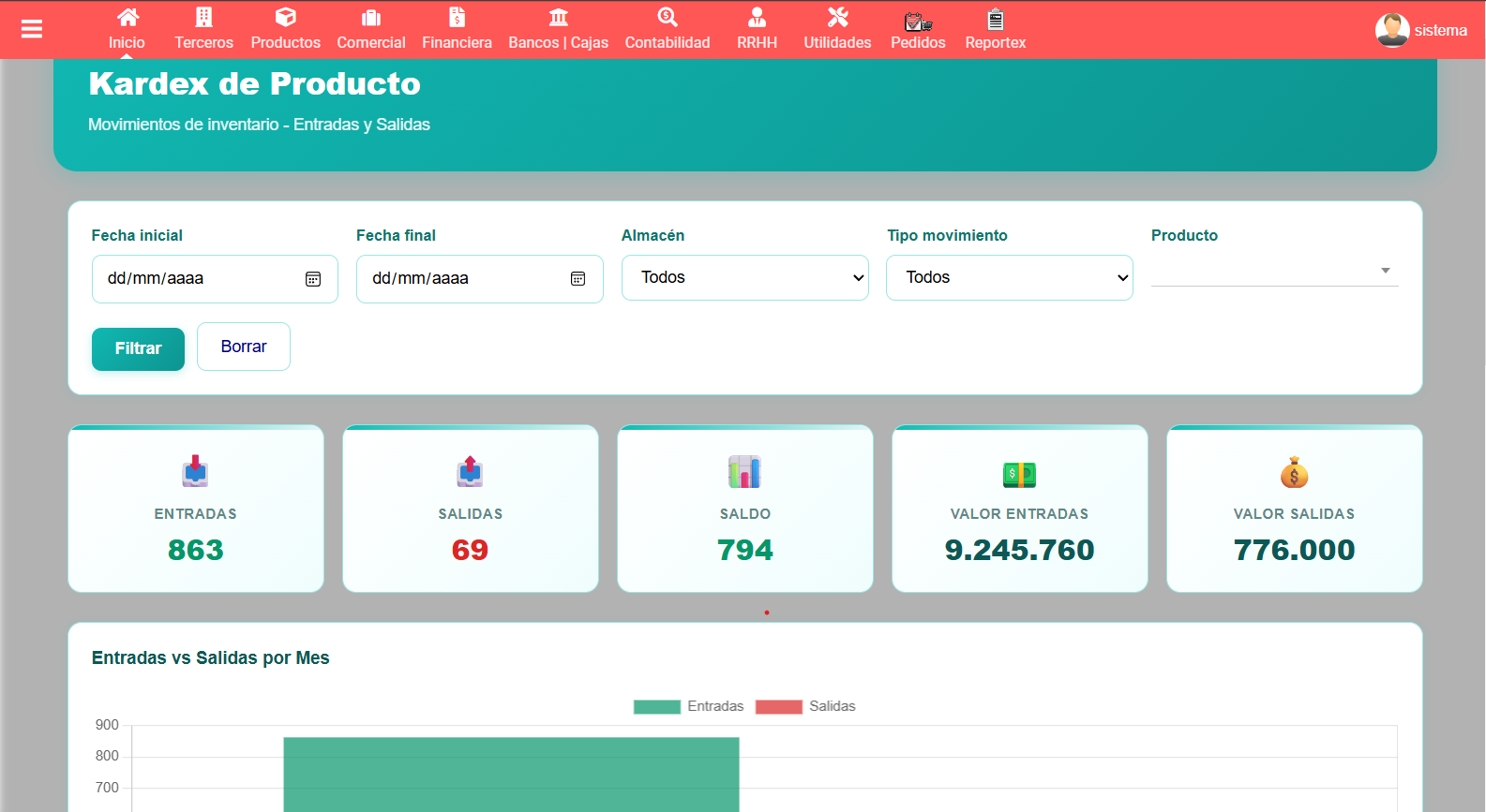 Comprehensive business reporting module for Dolibarr with 9 reports: Sales, Margins, Supplier Payments, Expenses & Payroll, Dispatch, Product Kardex, Inventory, Customer Portfolio, and Bank Kardex.