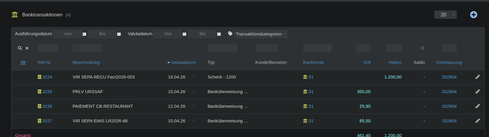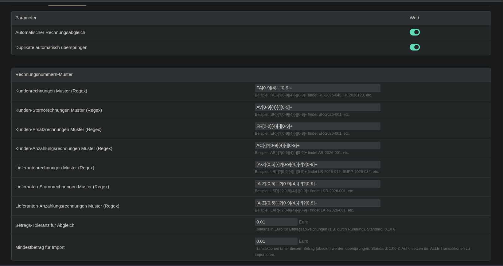The provider is not liable for: - Indirect damages or consequential damages - Lost profits - Data loss (if avoidable through appropriate backup) - Incorrect assignment of transactions to invoices - Financial errors due to incorrect import or matching - Damages from improper use or modification of the open software - Incompatibility with third-party software or CSV formats from other banks