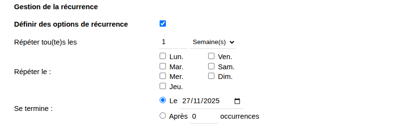 RecurringEvent manages event recurrence within Dolibarr, facilitating the automatic generation of recurring event series.
