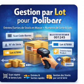 Bulk stock in/out by barcode scanning, with lot and serial numbers support (1 serial = 1 item).