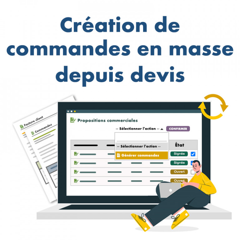 Creation of mass orders from quote. The “Creation of mass orders from quotes” module allows you to mass transform several orders from your quotes, or simply generate several orders from your commercial proposals on Dolibarr.