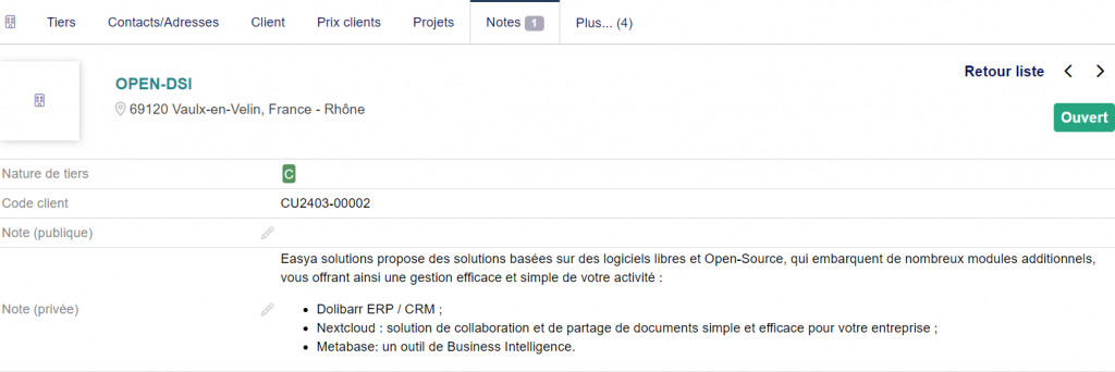 Company Infos set visible private notes and categories of thirdparties in the banner of their quotes, orders, invoices, interventions, contracts and tickets. |