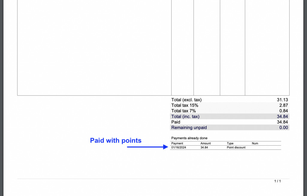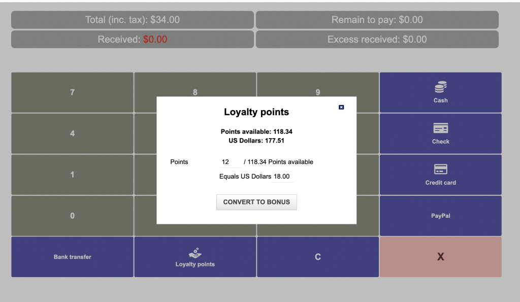 10. Use bonus points on TakePOS invoices: From the point of sale you can also redeem the points, the amount necessary to pay the invoice will be automatically charged for greater ease, you can also use change the amount to use a partial amount of points and pay the rest with another form of payment. payment, below is the process: