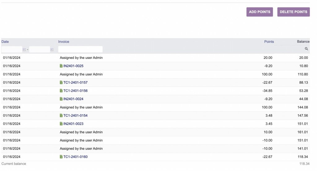 9. Use bonus points on standard Dolibarr invoices: To redeem the points obtained by clients, the necessary amount can be used to pay the invoice balance from the Dolibarr financial module. The amount necessary to pay the invoice will be automatically charged for greater ease. Below we can see it. :
