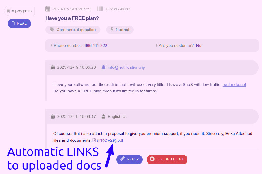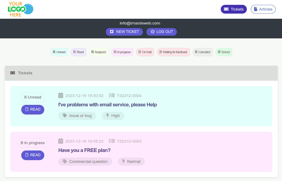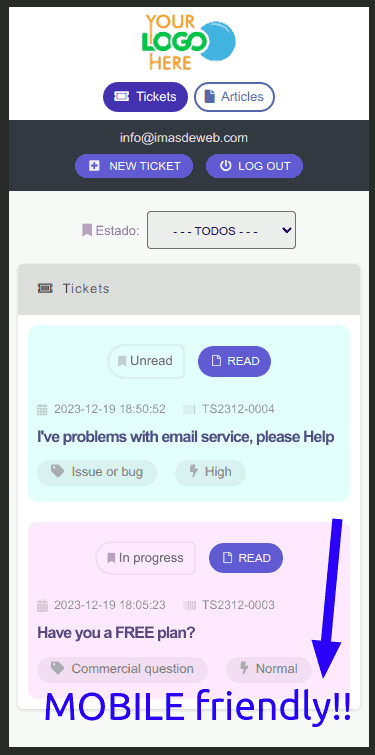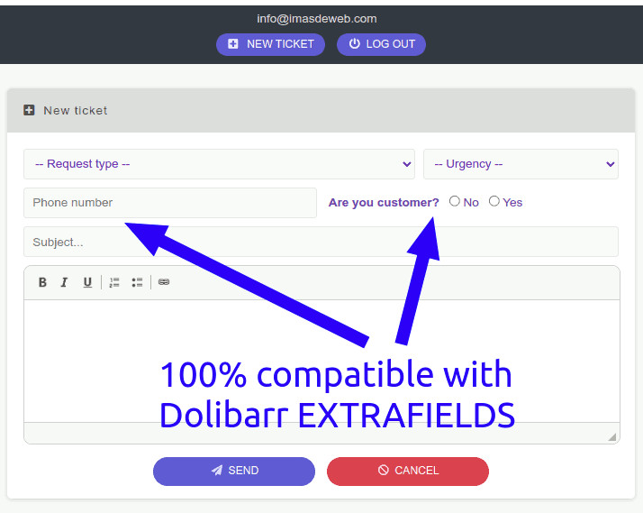 Im Wesentlichen bietet Ihnen dieses Modul ein schönes HelpDesk für Ihre Besucher und bleibt dabei zu 100% kompatibel mit dem Administratorpanel von Benutzern mit Zugriff auf Dolibarr.