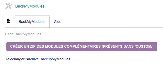 BackMyModules è un modulo di amministrazione essenziale che vi permette di fare il backup di tutti i vostri moduli complementari in un archivio ZIP scaricabile e di eliminare i moduli disattivati. Essenziale per riprendere il controllo dei vostri moduli e preparare i vostri aggiornamenti Dolibarr in sicurezza.