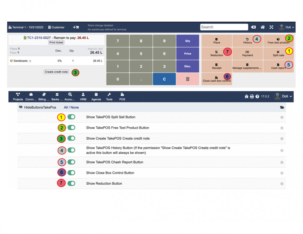 Restrict the use of buttons in the Takepos interface according to each user's privileges, also hide product categories that you want the user not to have access to, maintain control over the management of your cash register.