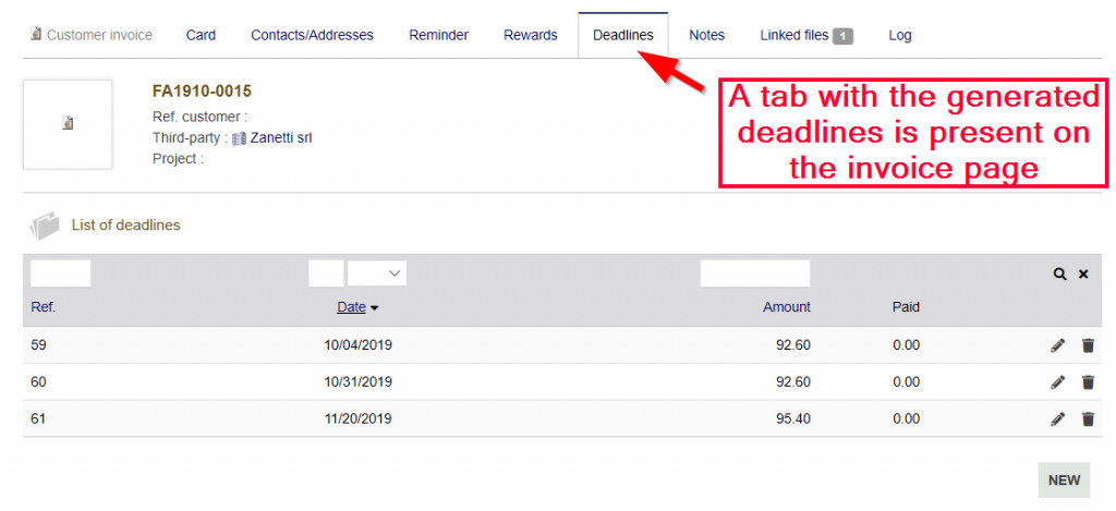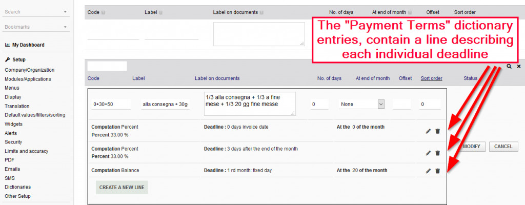 De hecho, es posible asociar una o más líneas de cálculo a cada "Plazo de pago", cada una de las cuales define, con la lógica descrita en el manual, los métodos por los cuales se generarán los plazos individuales.