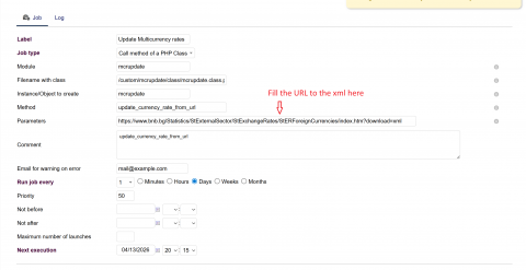 This module creates a cron job to update the currency rates on your Dolibarr installation. The source can be ANY URL that provides an XML output.