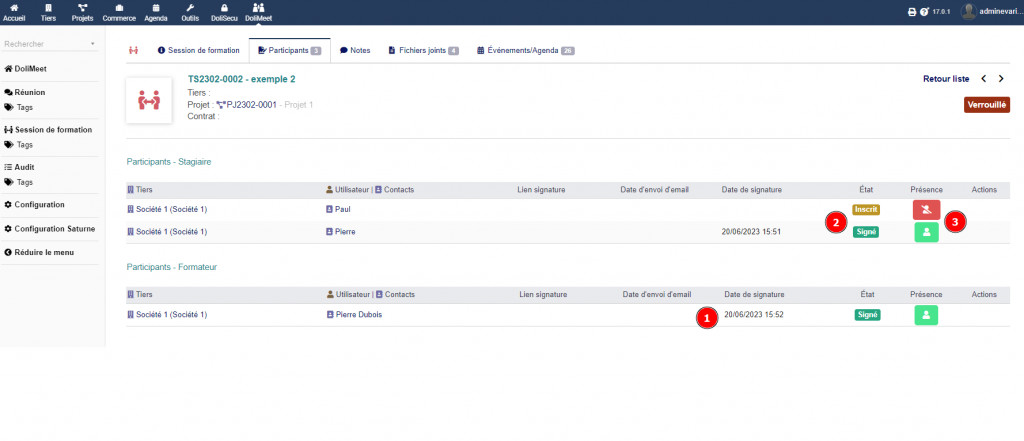 Mit DoliMeet können Sie folgen:meetings und Protokolle, schulungen mit Teilnahme- und Leistungsnachweis, audits mit dem Bericht
