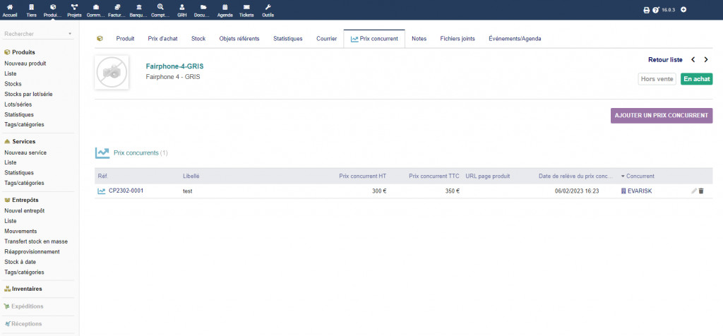 Análisis de precios de la competencia en dolibarr
